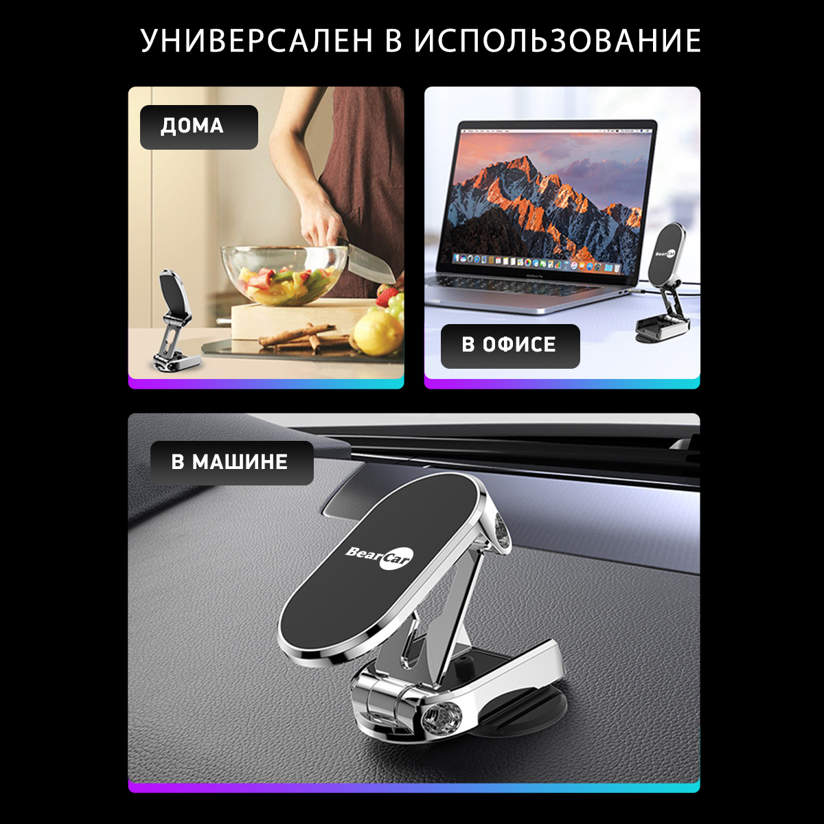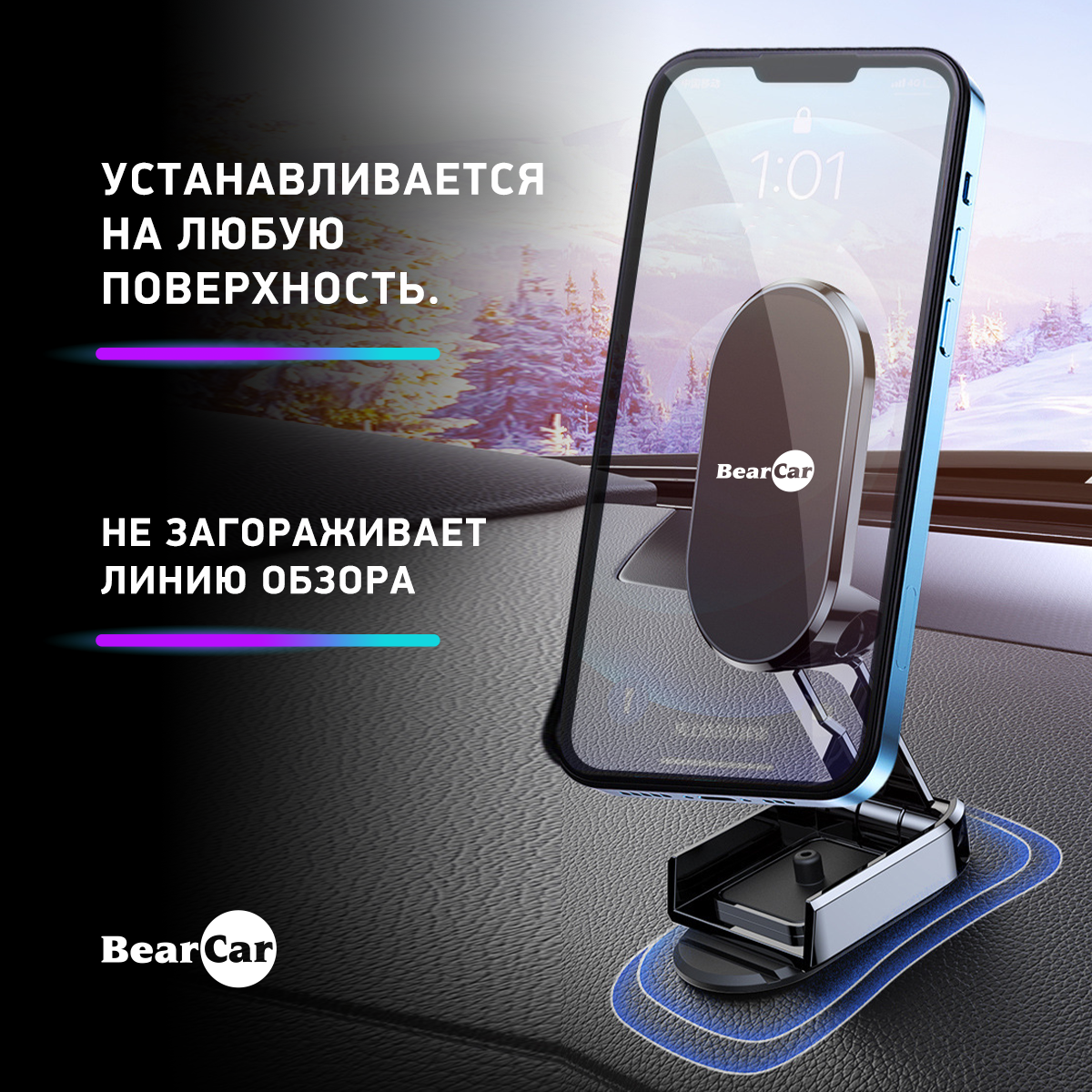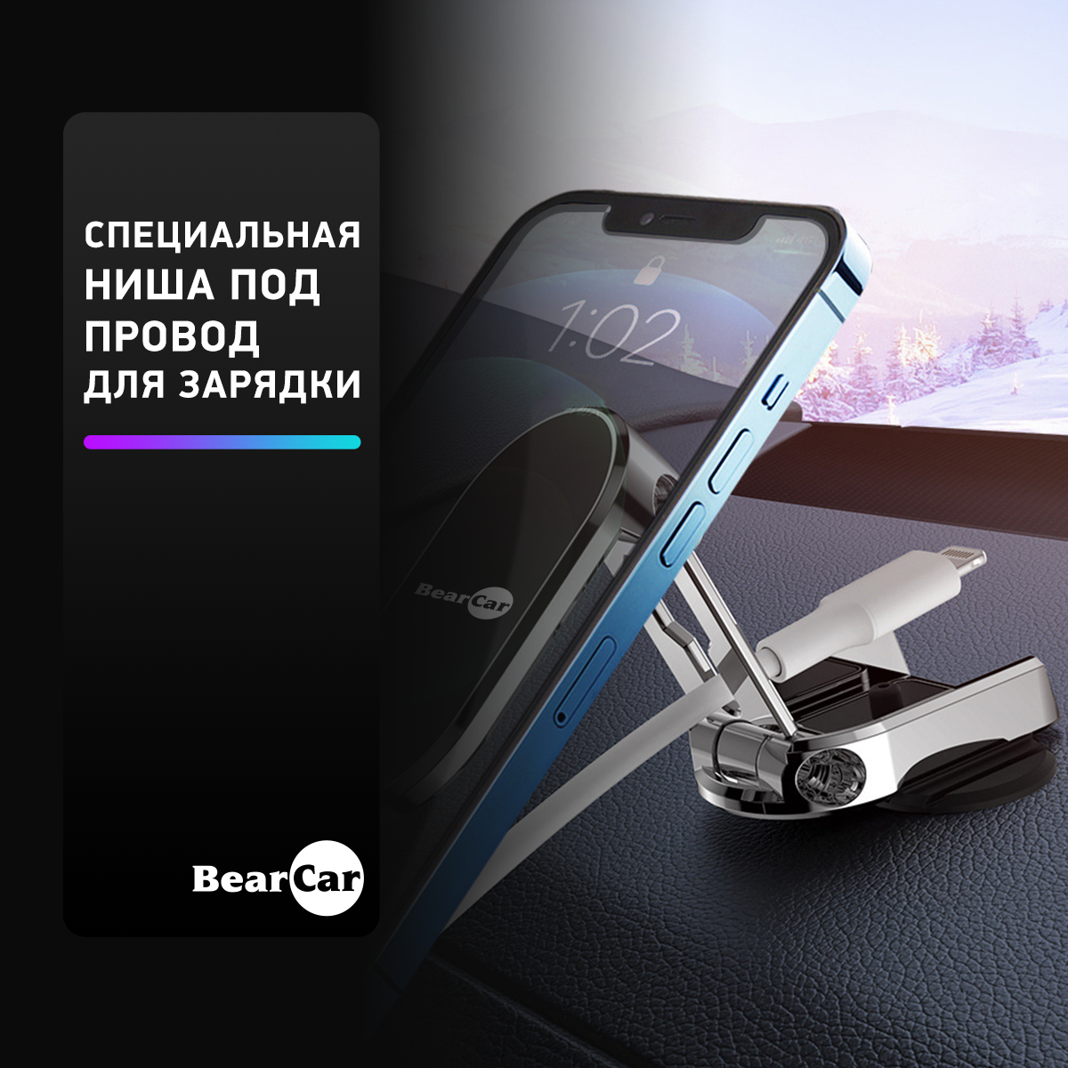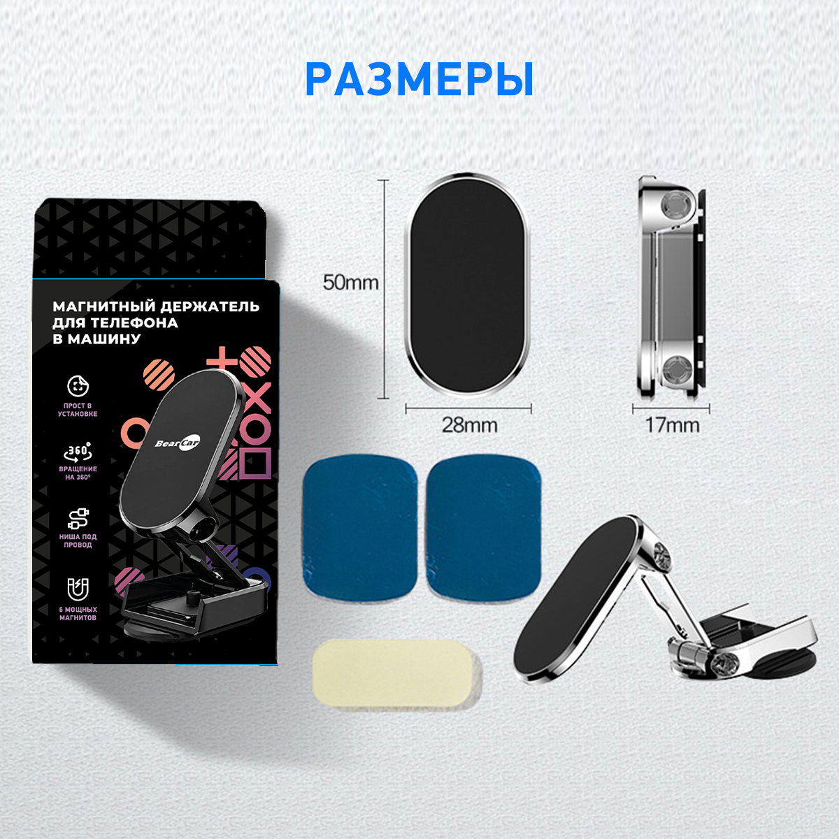 Автомобильный магнитный держатель для телефона BearCar интересное: