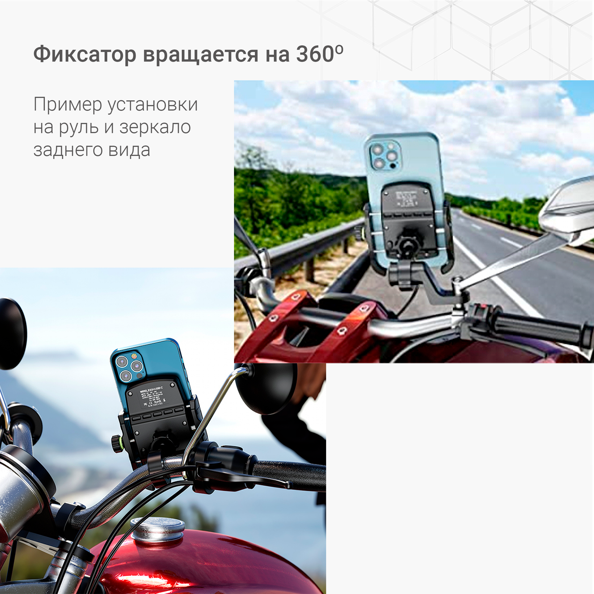 | Место крепления | зеркало заднего вида, руль, трубчатый элемент, универсальное |