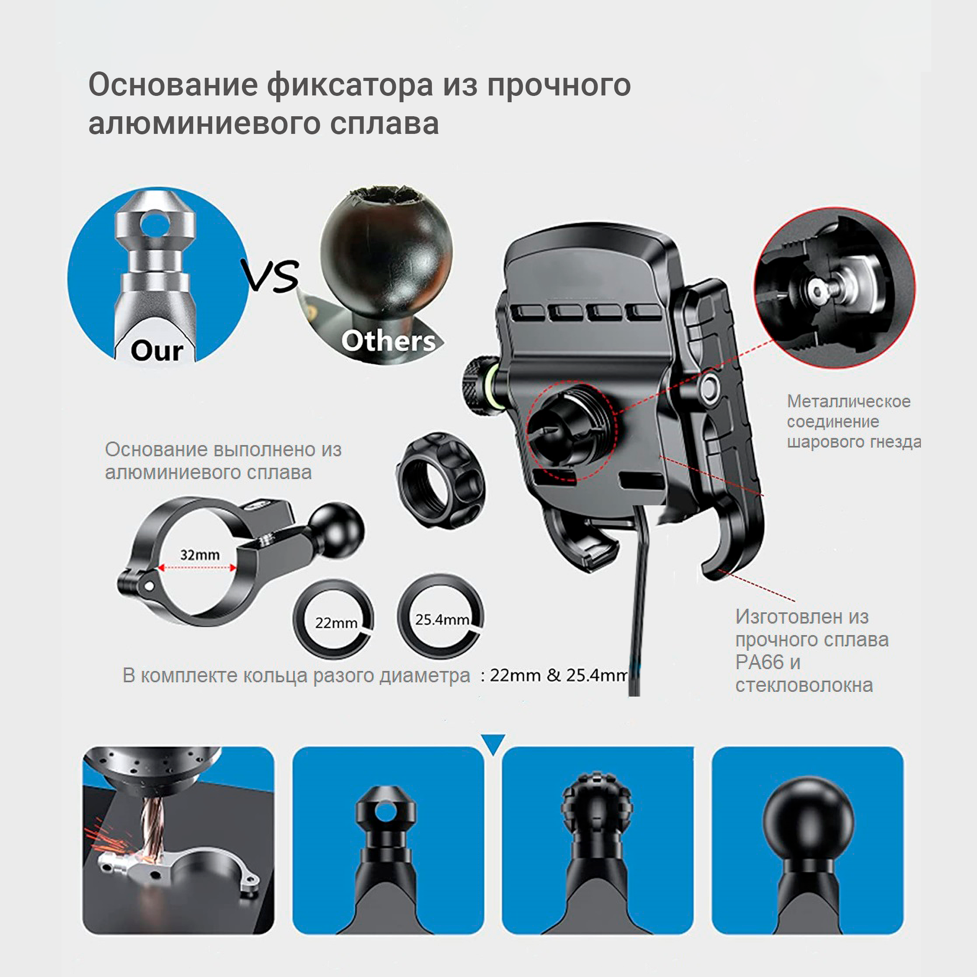 Держатель для смартфона быстросъемный на мотоцикл велосипед, Kewig KWG-M8sp, шириной до 90мм интересное: