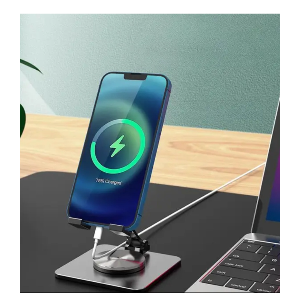 Подставка держатель для телефона и планшета настольная металлическая складная вращающаяся