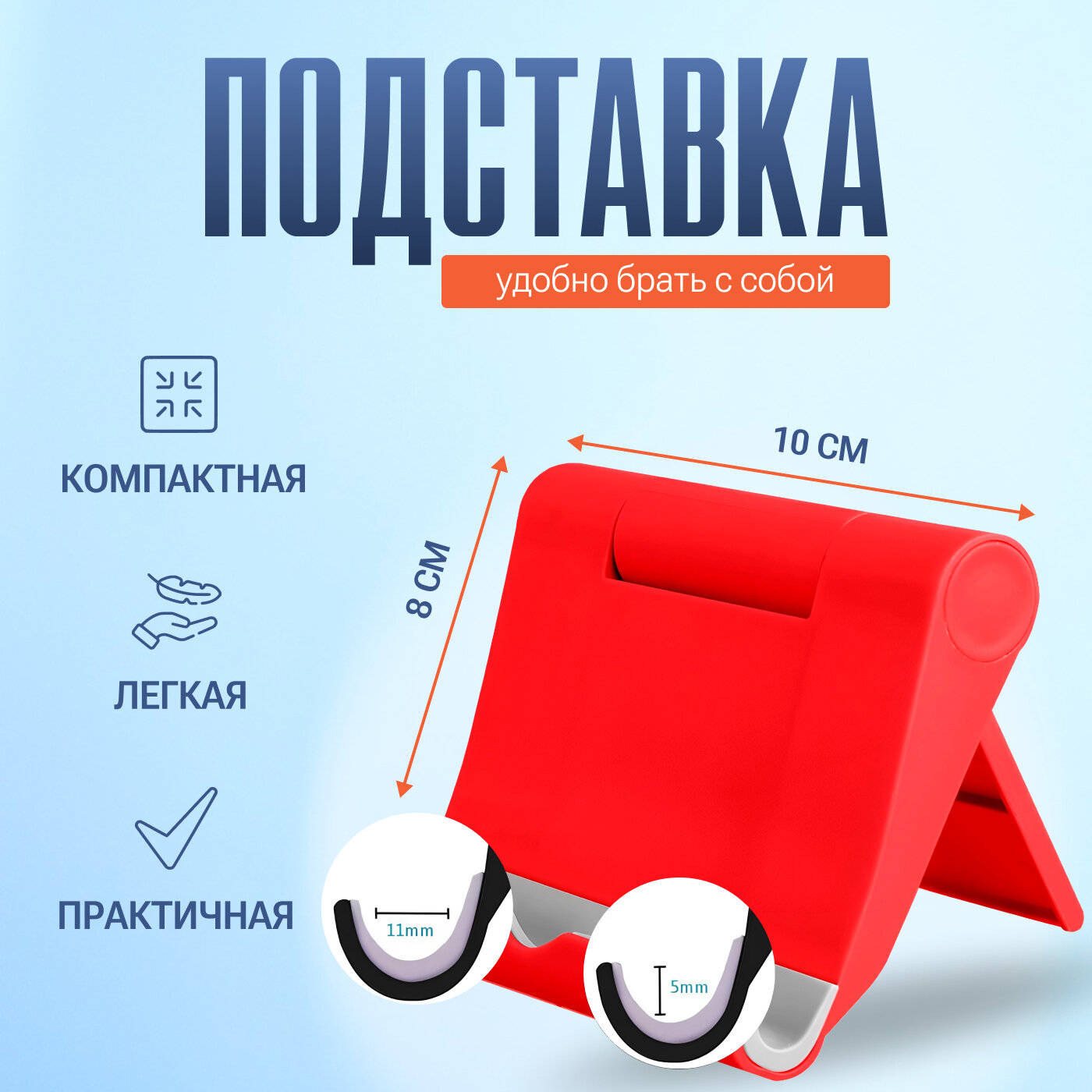 Подставка для телефона универсальная, складная, красная интересное: