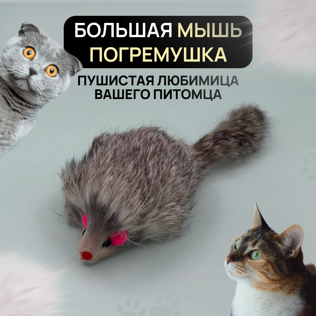 Игрушка для кошек - Большая мышка из натурального меха, цвет серый интересное: