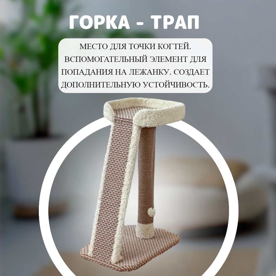 Когтеточка джутовая с игрушкой - Комплекс для кошек Олимп, цвет бежевый