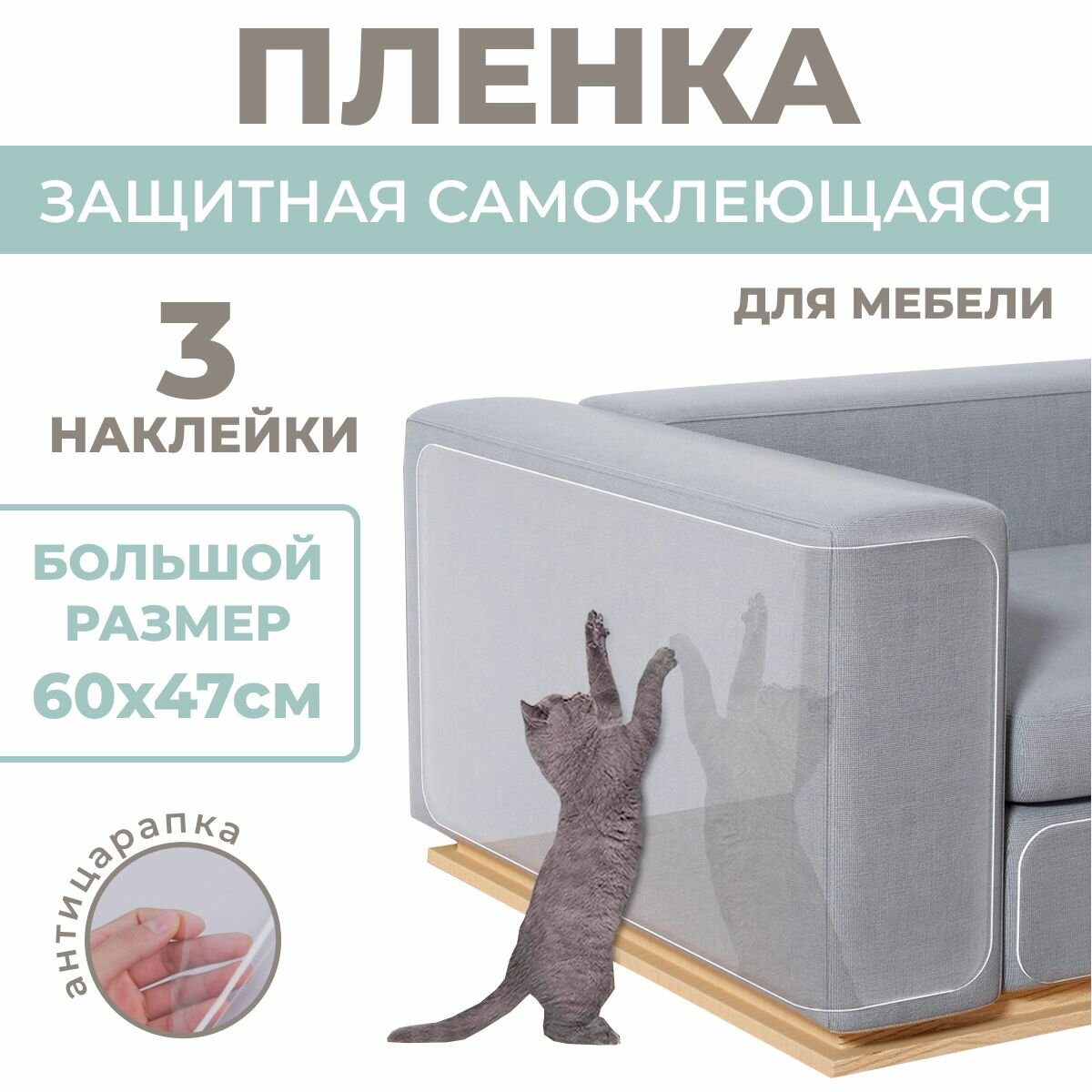 Купить (60х47см, 3 листа) Защитная пленка для мебели от кошек, от когтей / Пленка антицарапка