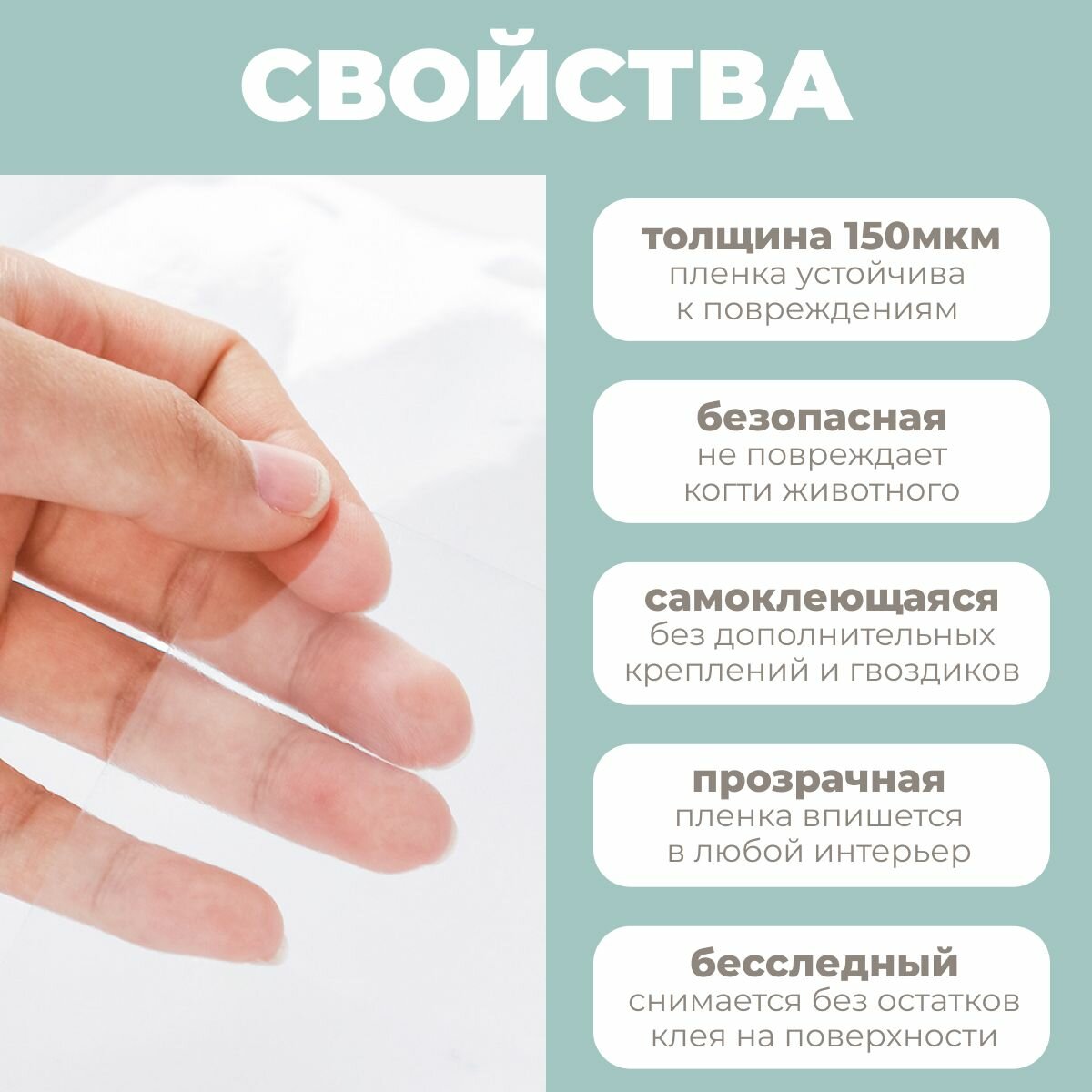 (60х47см, 3 листа) Защитная пленка для мебели от кошек, от когтей / Пленка антицарапка