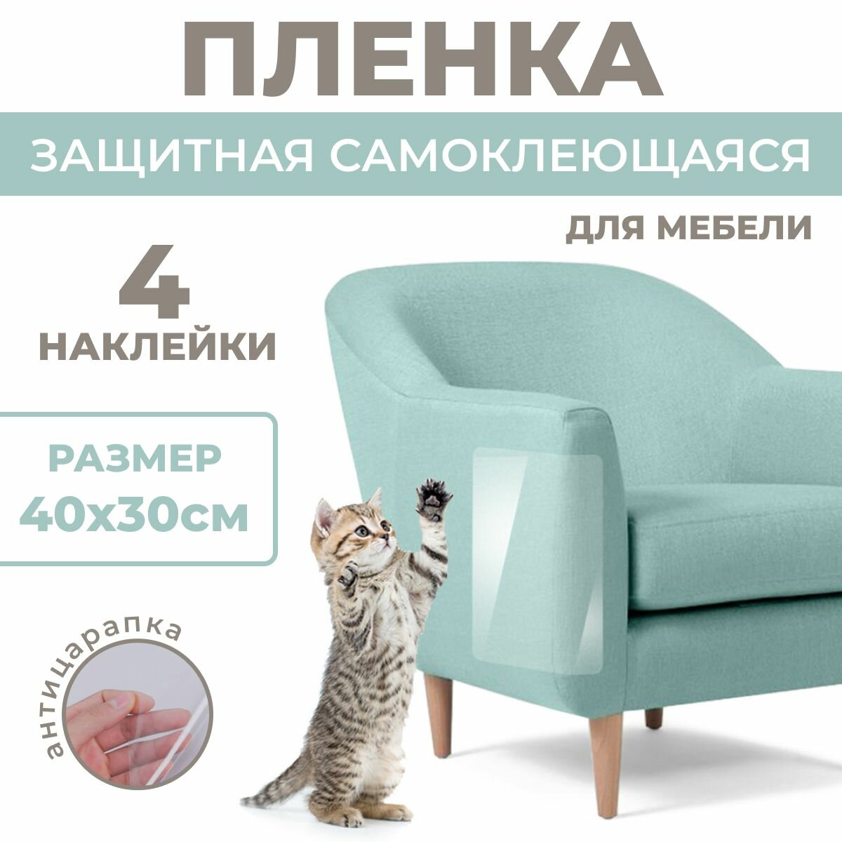(40х30см, 6 листов) Пленка антикоготь самоклеящаяся на мебель и обои. Защитная пленка от царапин кошек