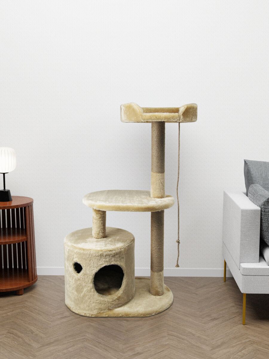 Когтеточка (игровой комплекс) YUGA для кошек, с домиком, с лежанкой, с игрушкой, 55х36х101см, бежевый интересное: