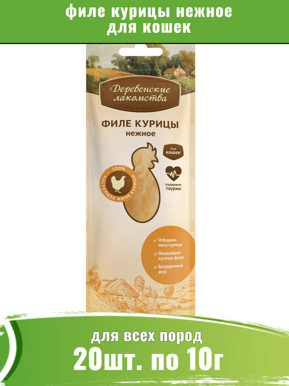 Деревенские лакомства 20шт х 10г филе курицы нежное для кошек интересное: