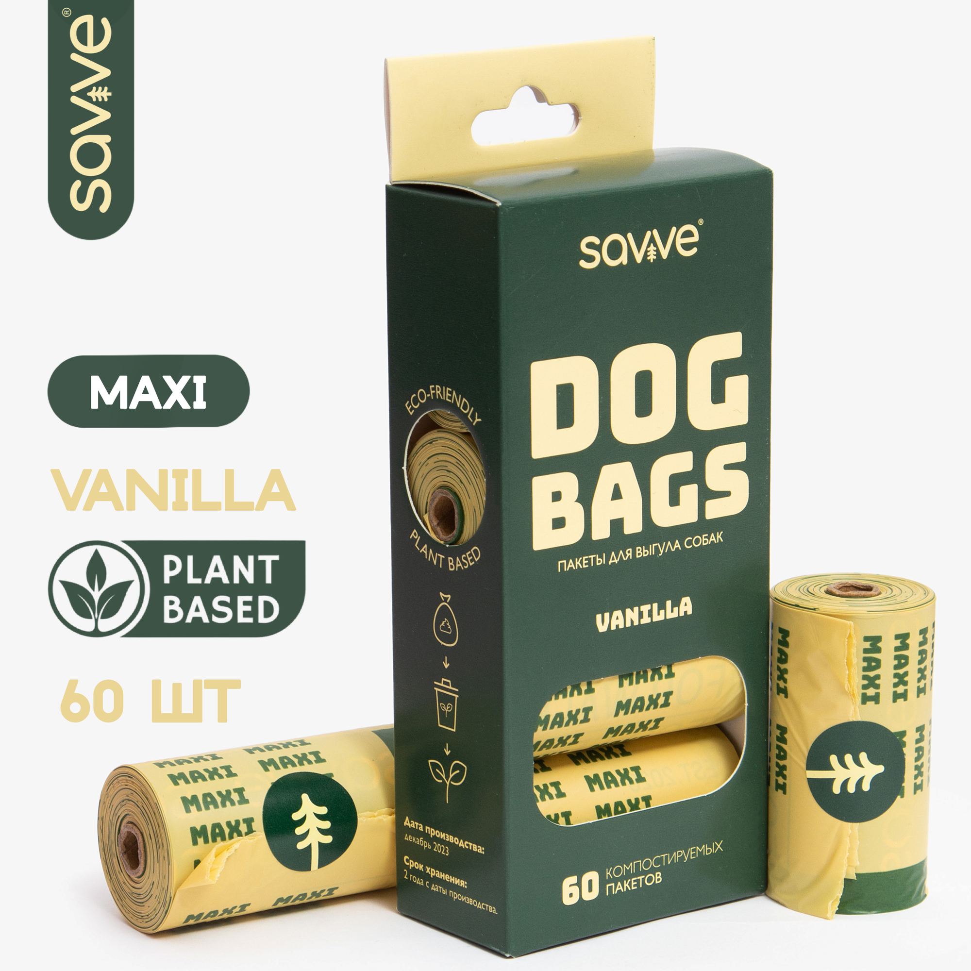 Купить Биоразлагаемые пакеты SAVVE MAXI для выгула собак, ваниль 60 штук