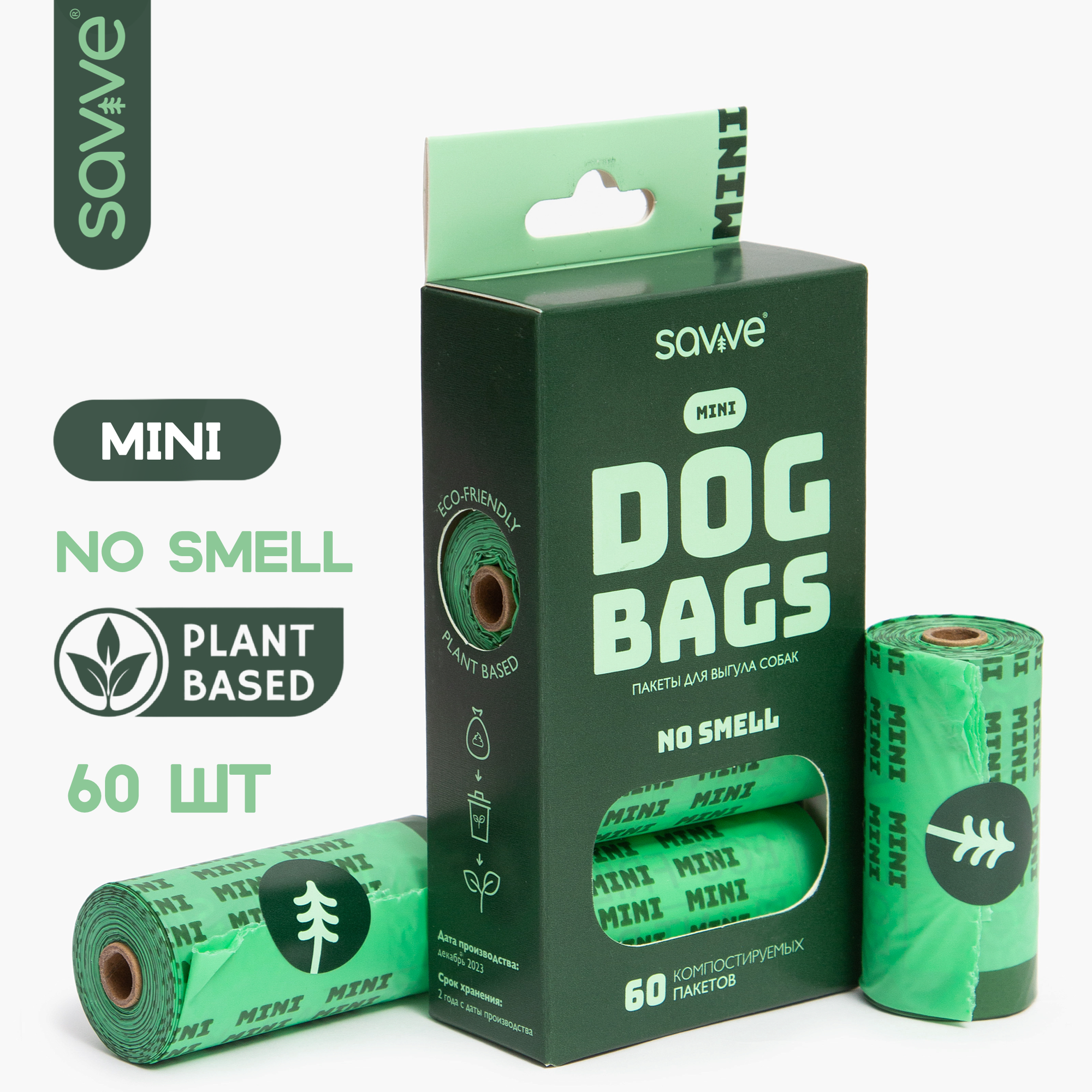 Купить Биоразлагаемые пакеты SAVVE Mini на органической основе для выгула собак, без запаха 60 штук
