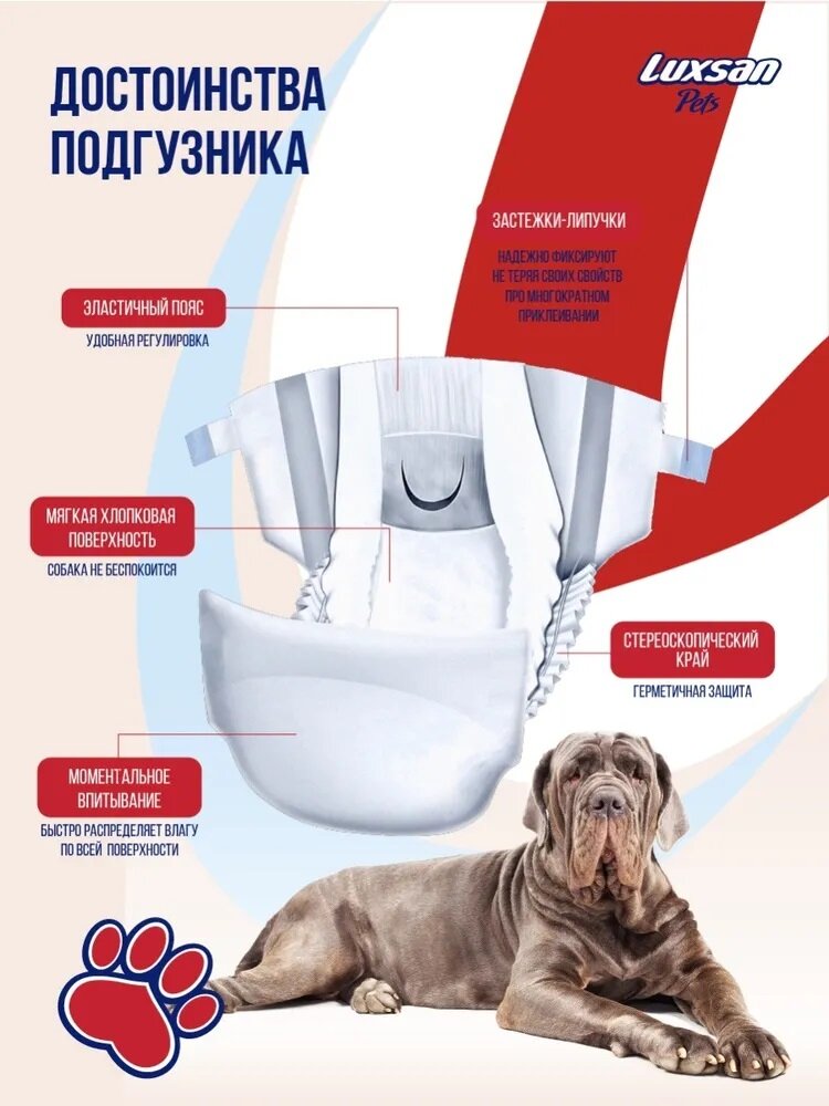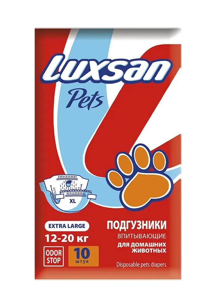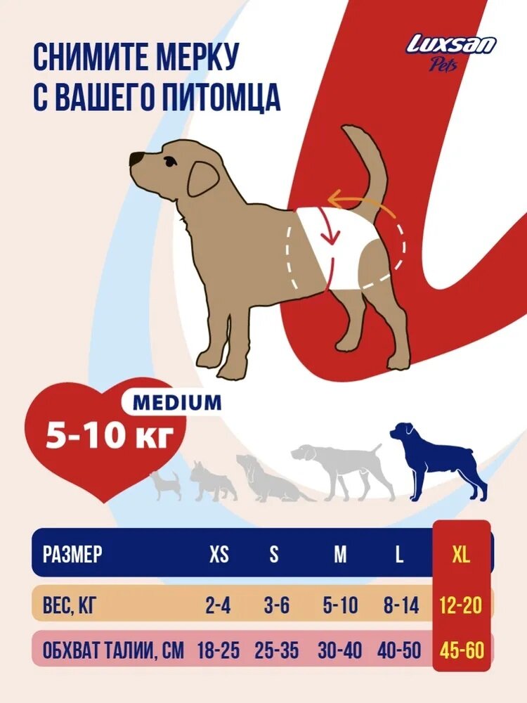 Подгузники для животных XL (12-20кг)(45-60см) 10шт/уп LUXSAN Premium интересное: