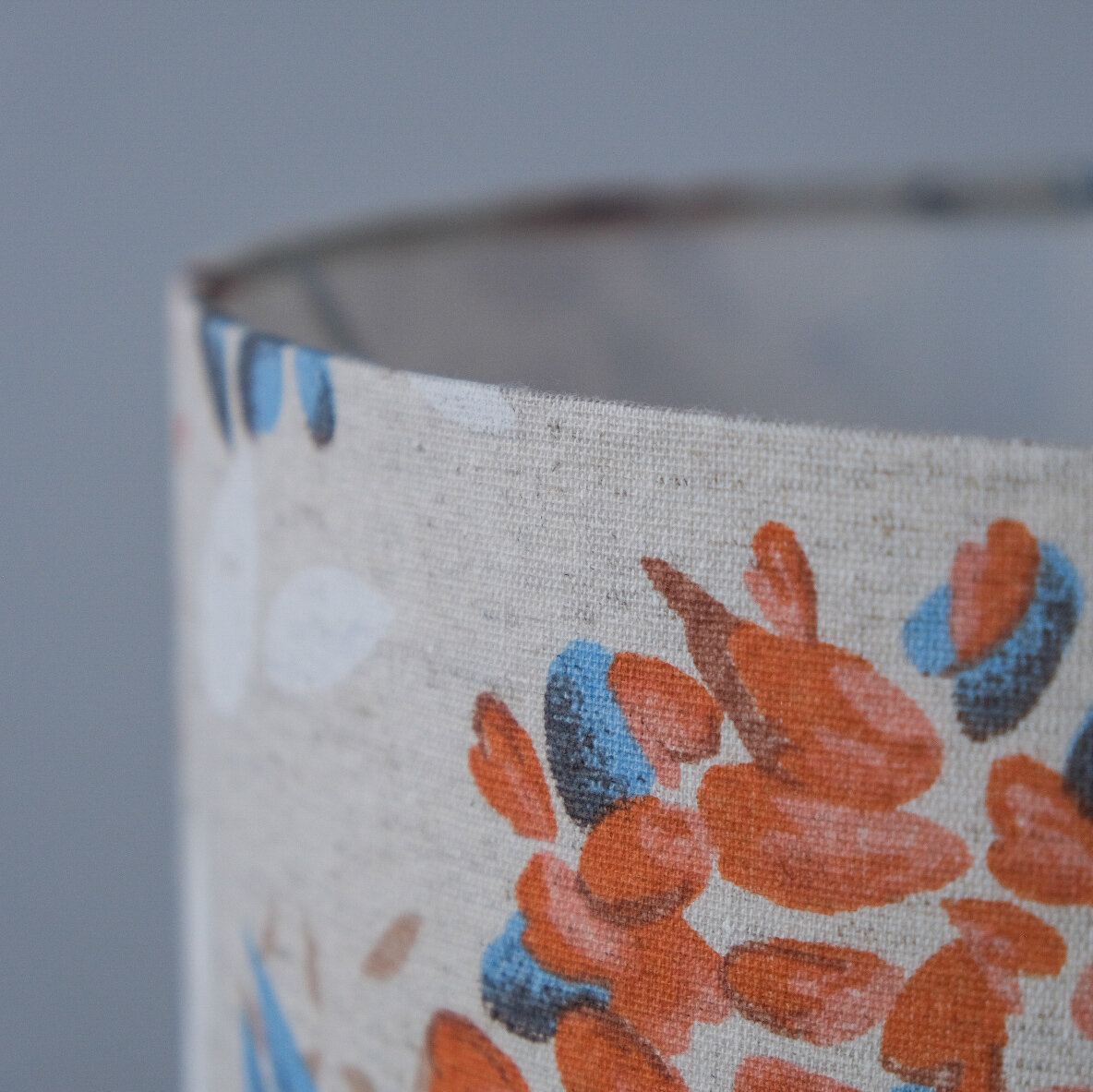 Абажур для настольной лампы и торшера, лён "Маки", цилиндр 30 см