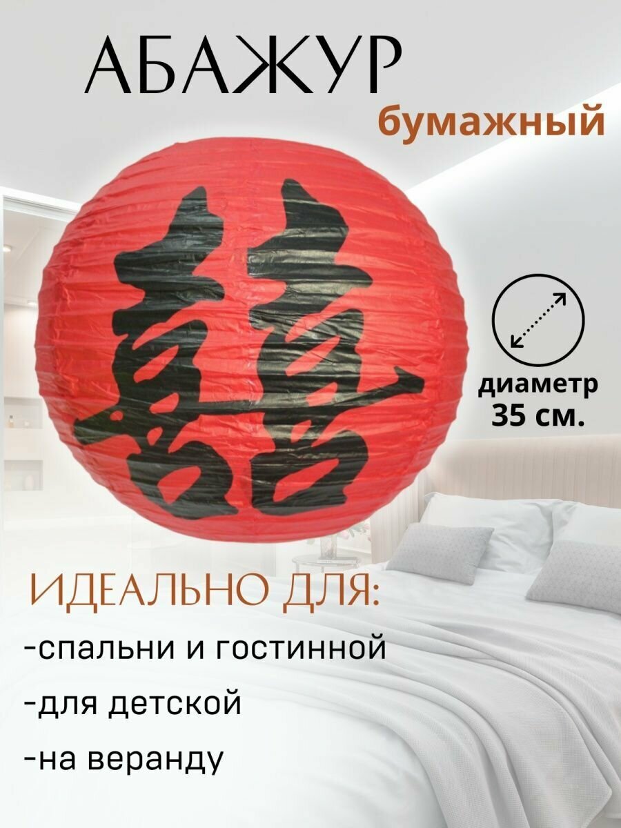 Абажур бумажный феншуй 1 штука 35 см. красный с иероглифами интересное: