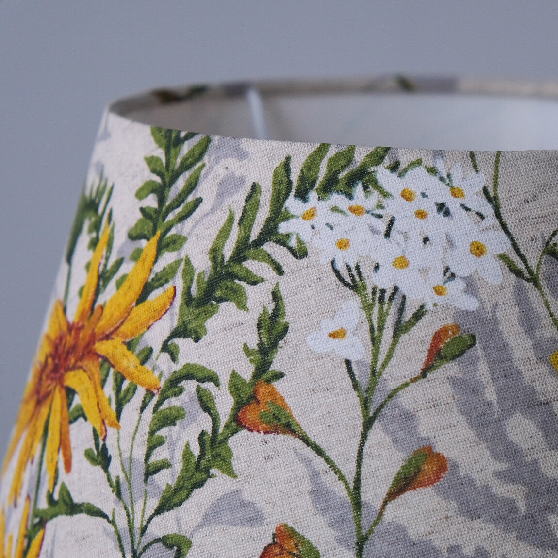 Абажур для настольной лампы и торшера, лён "Маки", конус 35 см