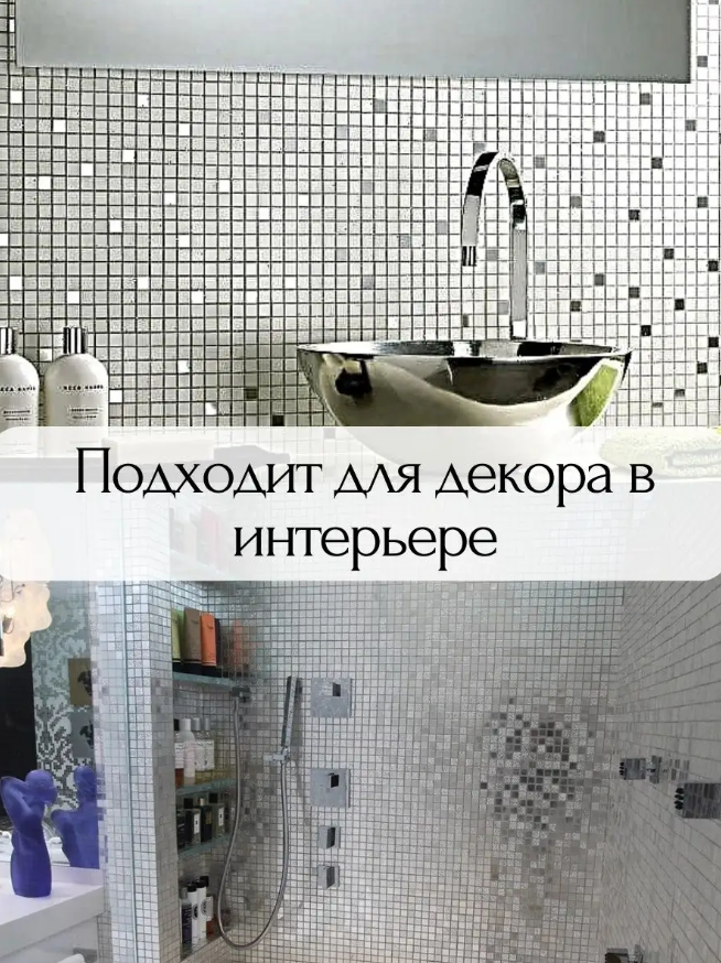 Самоклеящаяся лента-мозаика зеркальная для декора в интерьере и рукоделия , серебро интересное: