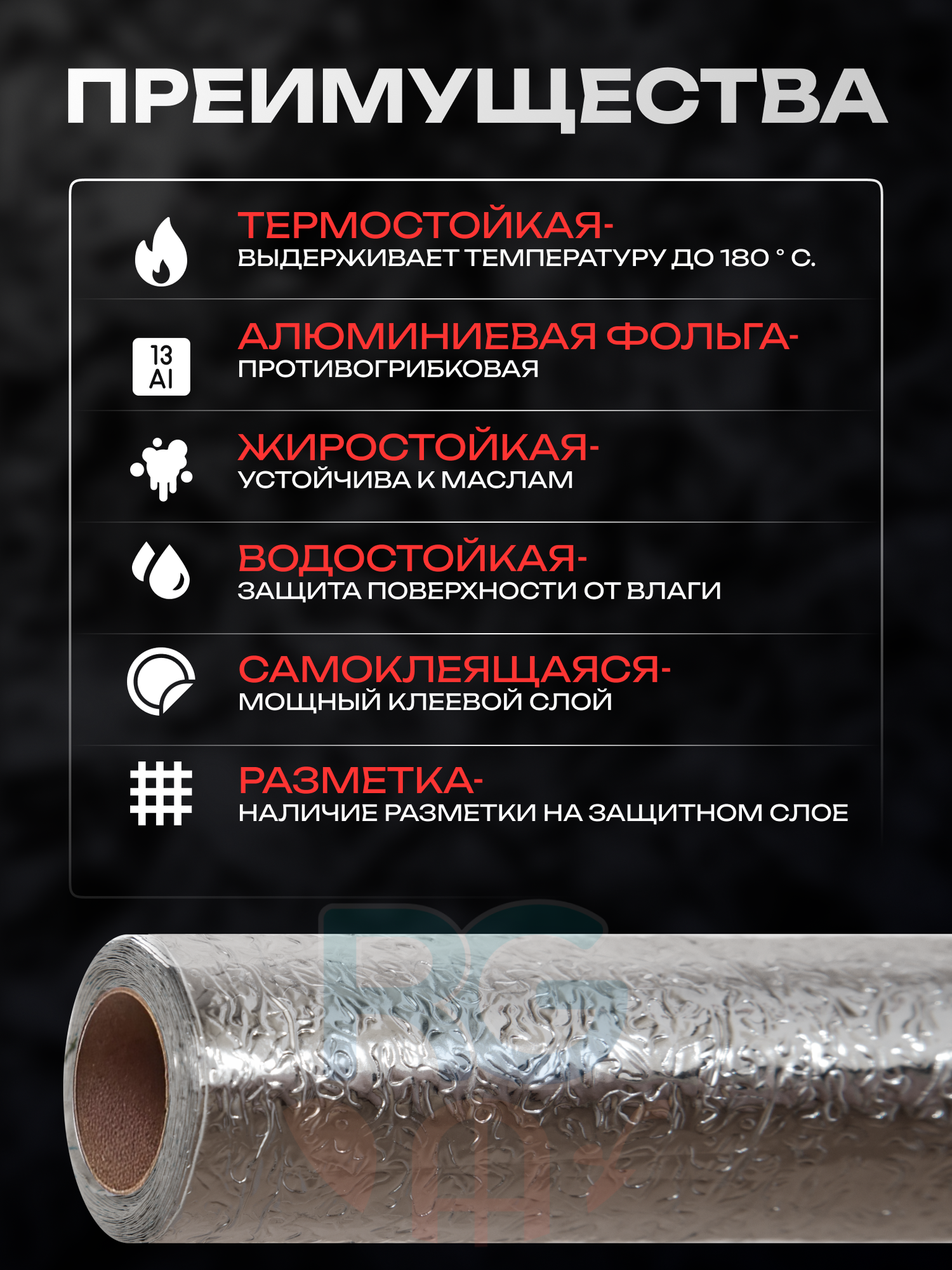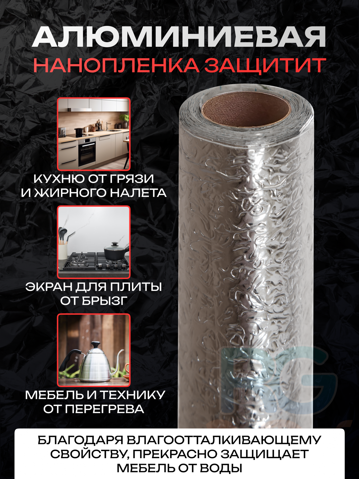 Купить Самоклеящаяся защитная алюминиевая пленка. Фольга самоклеющаяся термостойкая, фартук на кухню