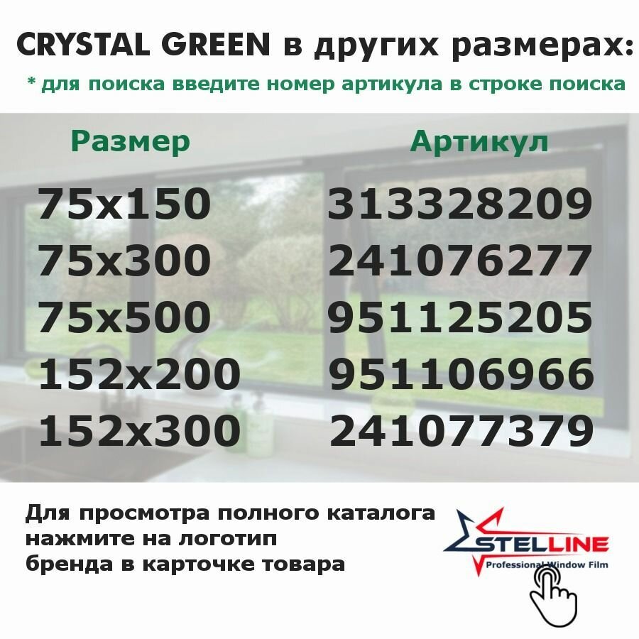 СохранитьАтермальная (энергосберегающая) пленка STELLINE CRYSTAL GREEN для окон рулон 75x500см (Пленка солнцезащитная самоклеящаяся на окно) интересное: