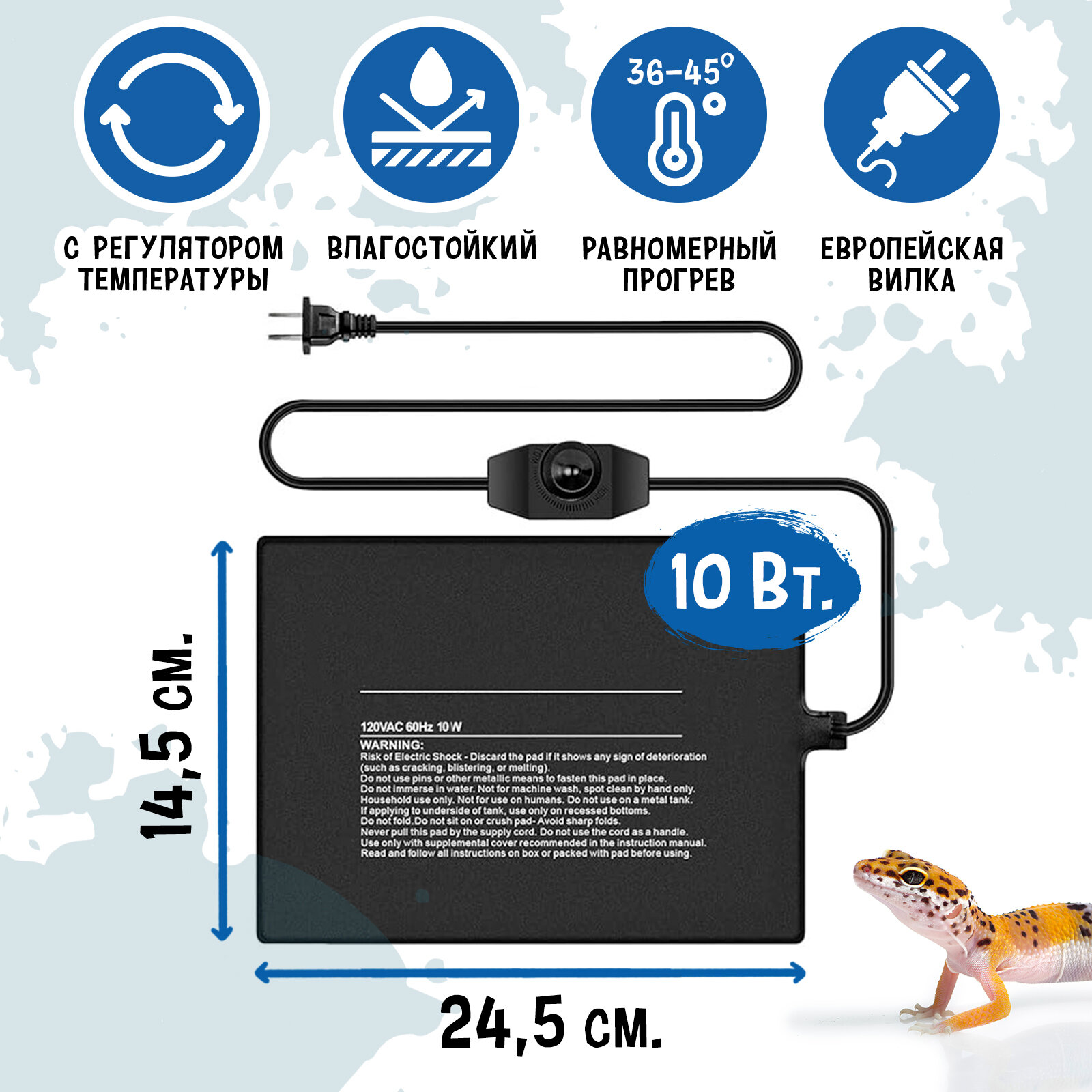 Купить Термоковрик 10Вт влагозащищенный с диммером MCLANZOO, самоклеющийся, чёрный, 14.5x24.5см, кабель 1.