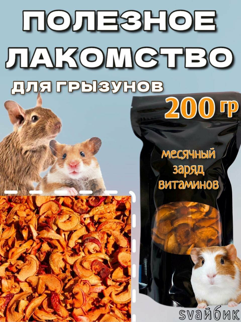 Лакомство для грызунов: Сушеные яблоки svaйбик 200 грамм интересное: