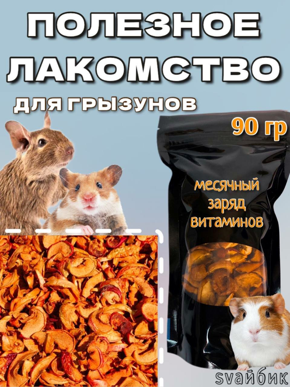 Лакомство для грызунов: Сушеные яблоки svaйбик 90 грамм интересное: