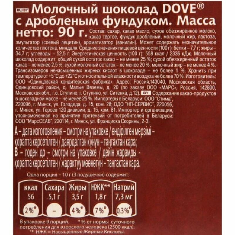 Dove молочный шоколад с дробленым фундуком, 90 г интересное: