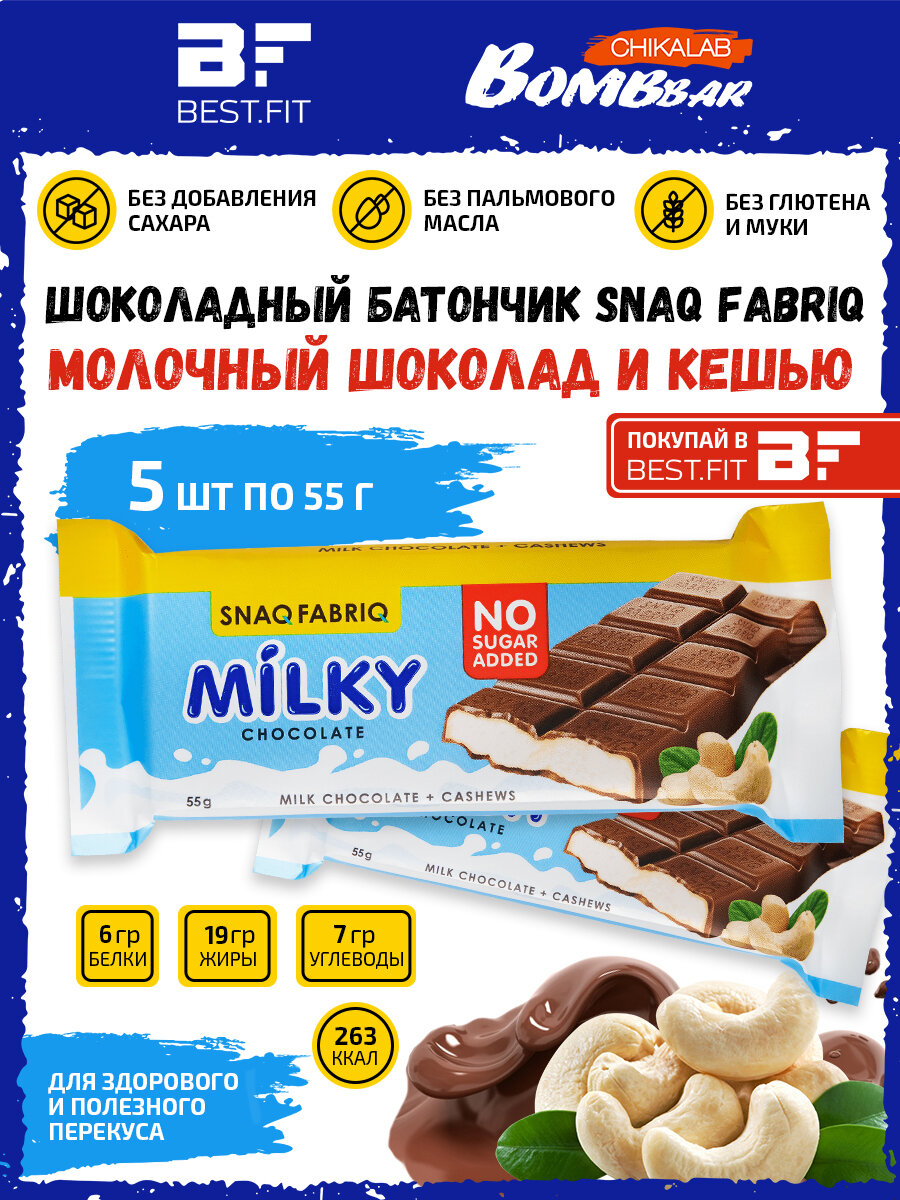 Snaq Fabriq, Milky Chocolate (5х55г) Молочный шоколад с начинкой (Молочная с кешью) интересное: