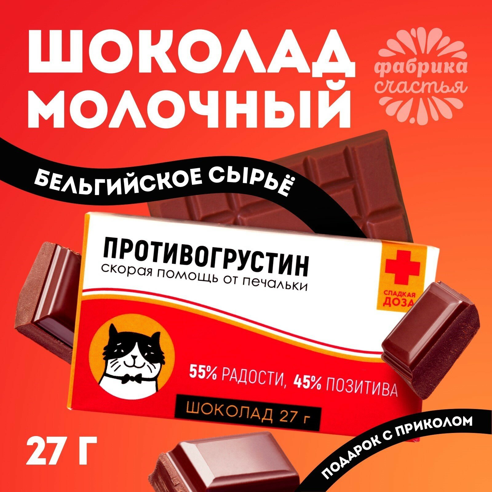 Купить Подарочный молочный шоколад "Противогрустин", 27 г