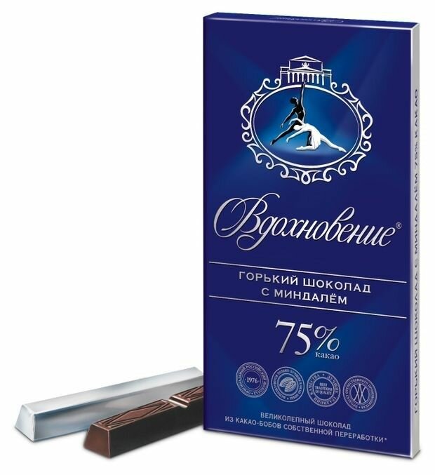 Шоколад Вдохновение с миндалем 75% какао, 100 гр. интересное: