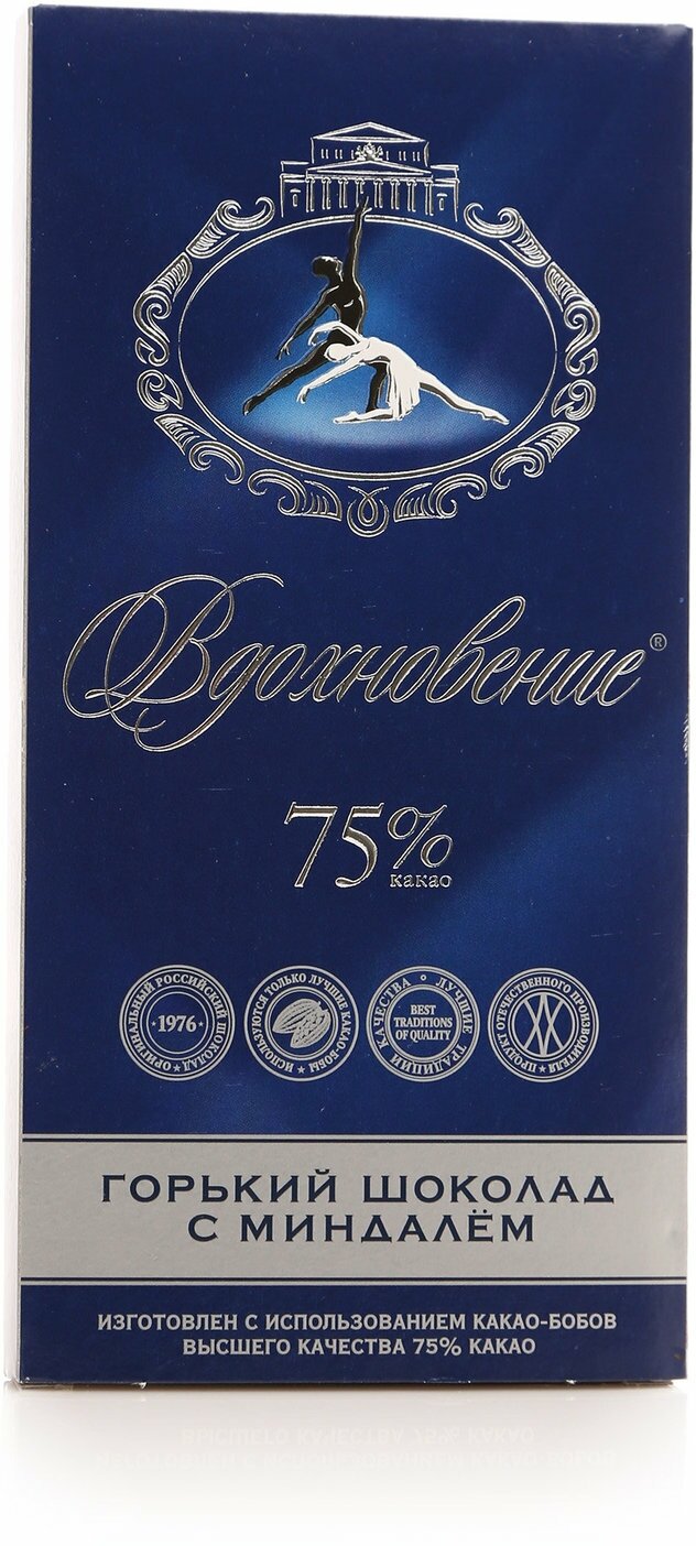 Купить Шоколад Вдохновение с миндалем 75% какао, 100 гр.