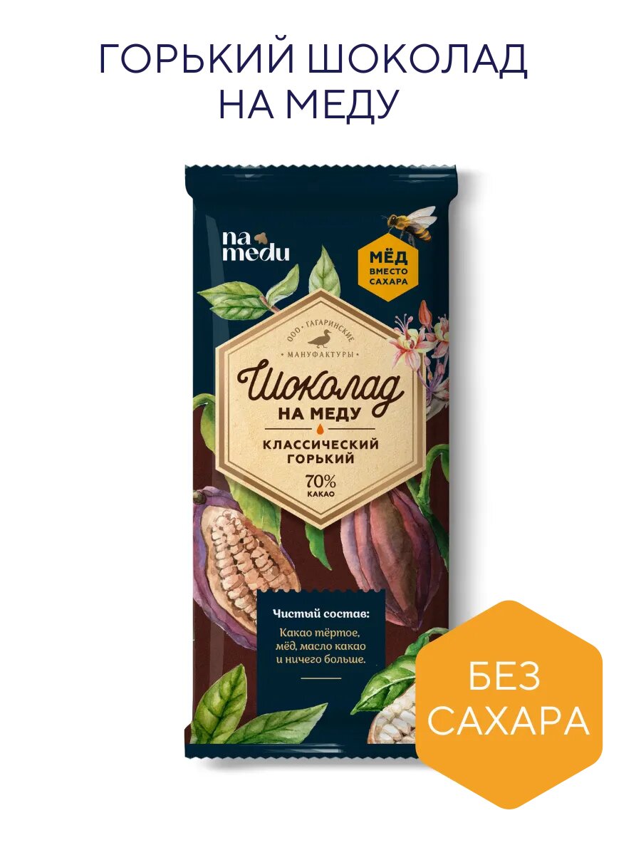 Шоколад горький Без сахара на меду 70% - 5 шт