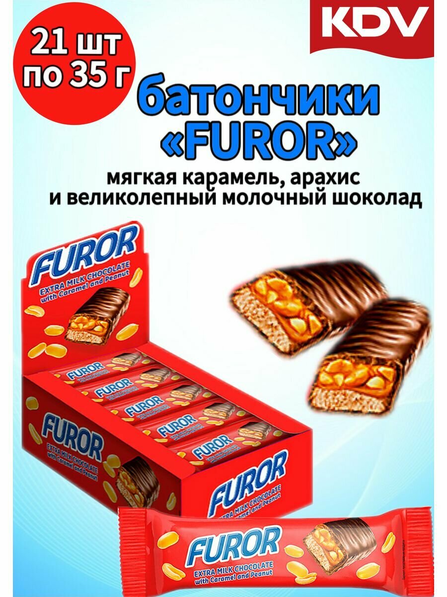 Купить Батончики KDV Furor с жареным арахисом, мягкой карамелью и нугой, 21 шт по 35 г