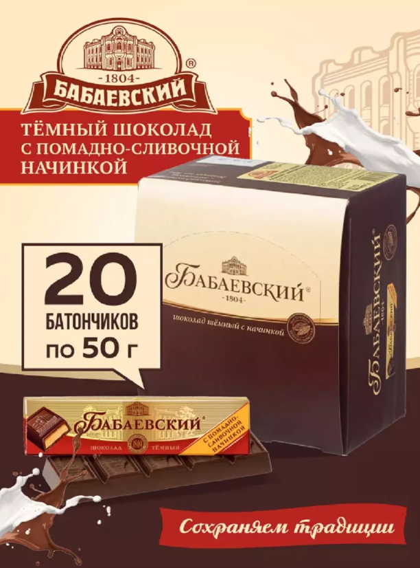 Шоколадный батончик Бабаевский помадно-сливочный 20 шт по 50 гр интересное: