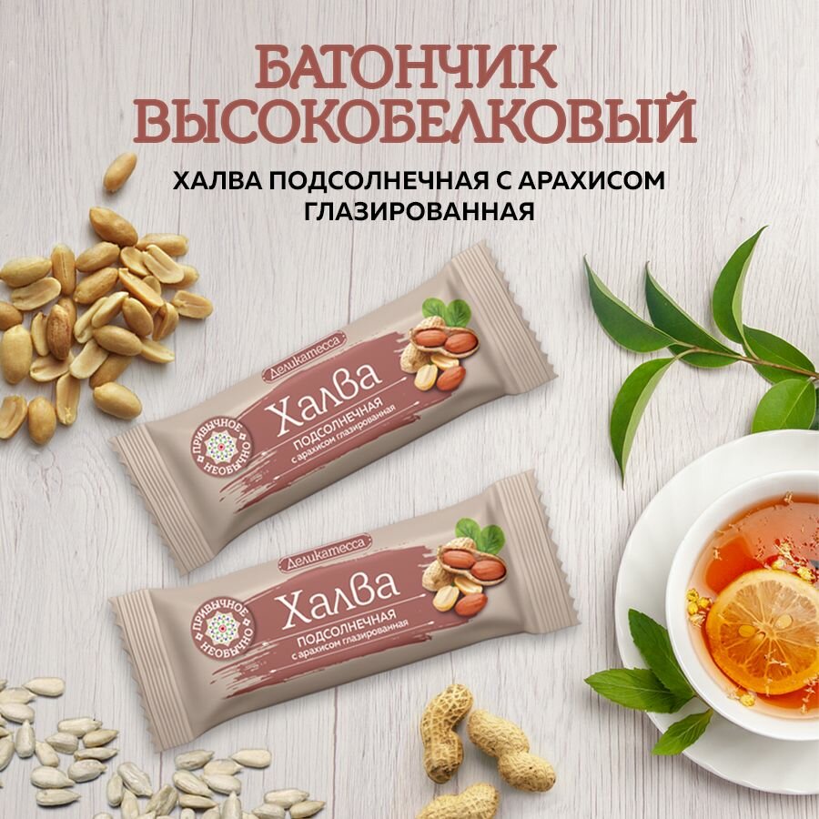 Батончик Халва подсолнечная с арахисом глазированная 12шт по 50 гр. (Мишкино/Деликатеса) интересное: