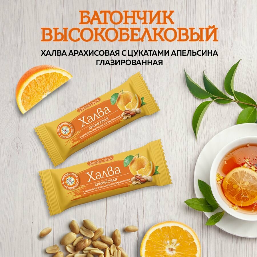 Батончик Халва арахисовая с цукатами апельсина глазированная 12шт по 50 гр. (Мишкино/Деликатеса) интересное: