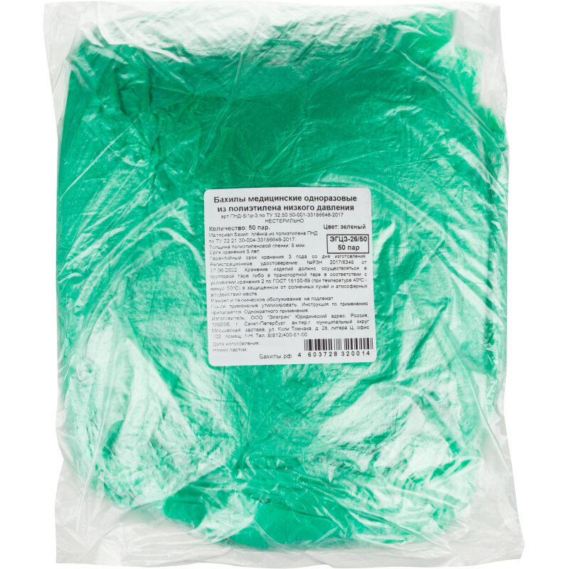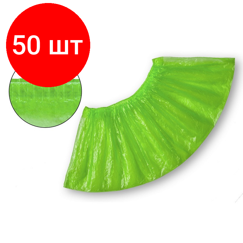 Комплект 50 упаковок, Бахилы н/с, п/э текстур. 2.8г ПНД-8/1р-З зеленые 50 пар/уп интересное:
