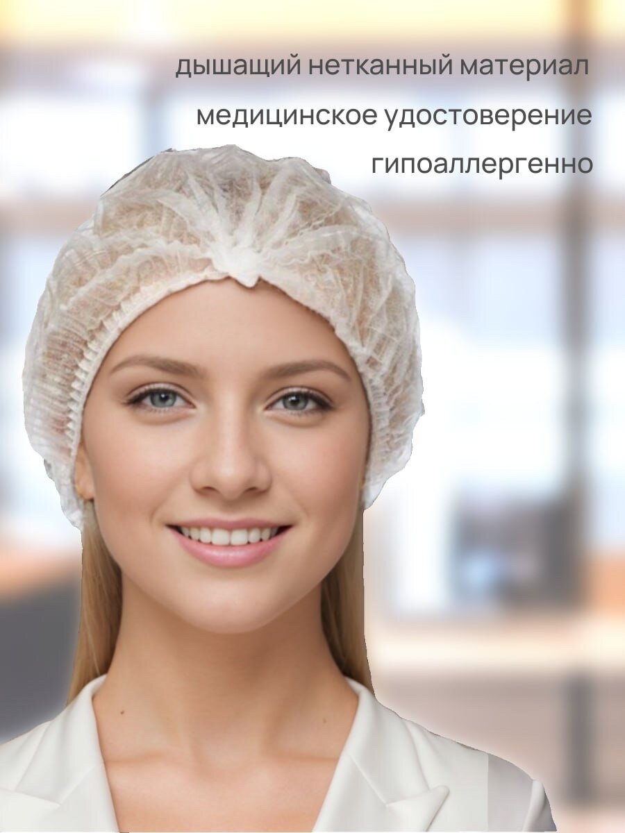Одноразовая медицинская шапочка "Шарлотта", SMS, белая 100 шт.