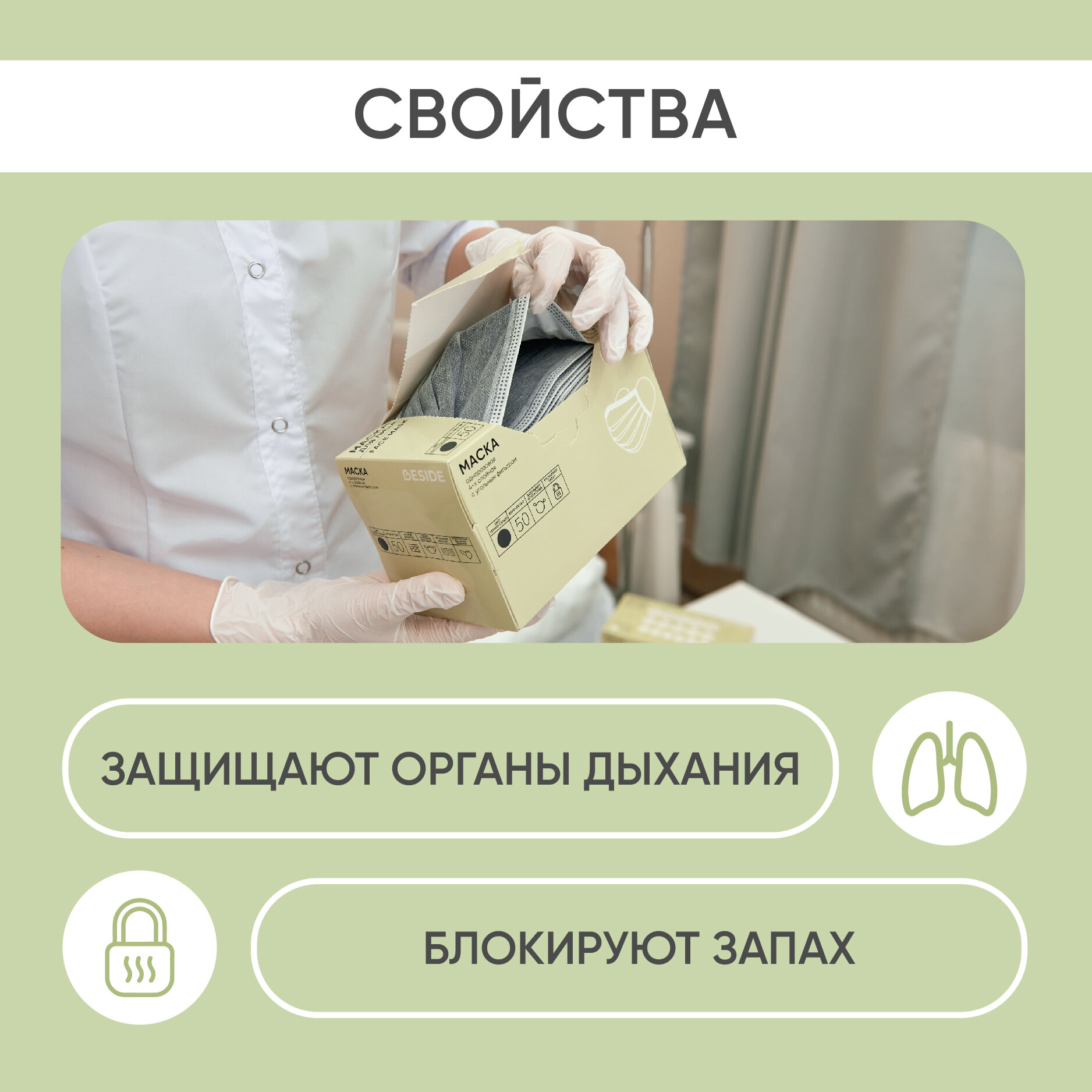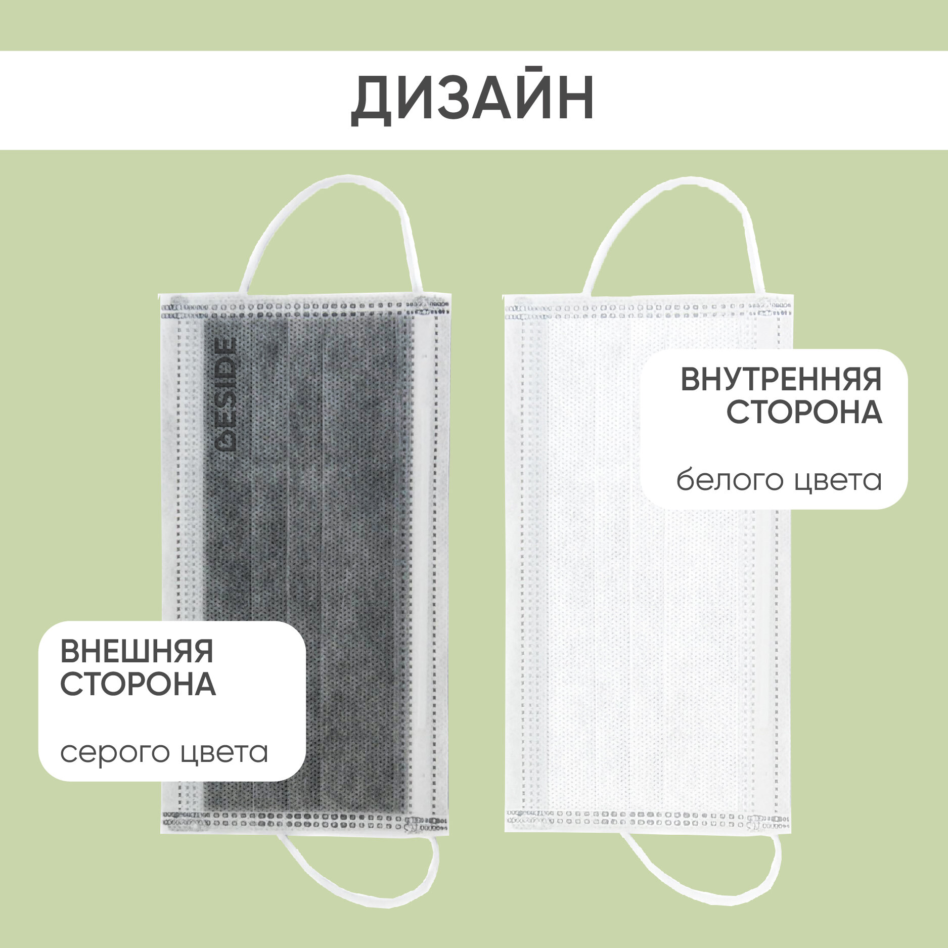 Маски медицинские одноразовые для лица BESIDE, серые, 50 шт с угольным фильтром четырехслойные, мелтблаун, набор гигиенических защитных масок интересное: