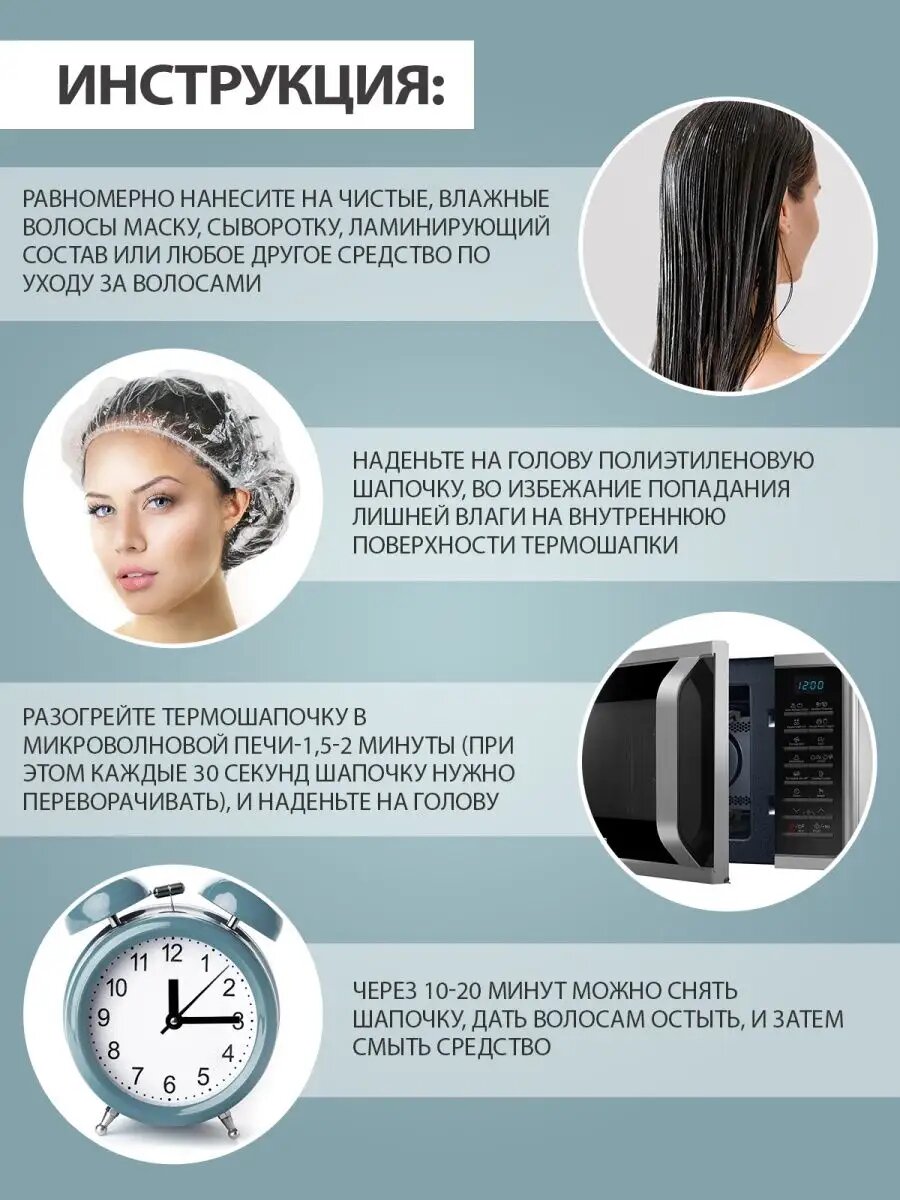 SLEEP DELIVERY Термошапочка для косметических процедур с семенами льна/Термошапка для волос, голубая