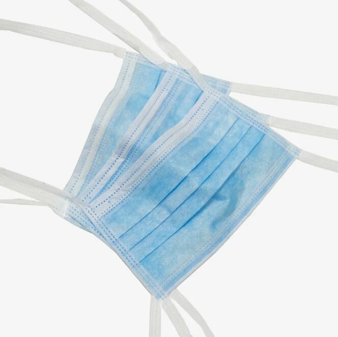 Маска медицинская на завязках, одноразовая, трехслойная, 100 штук