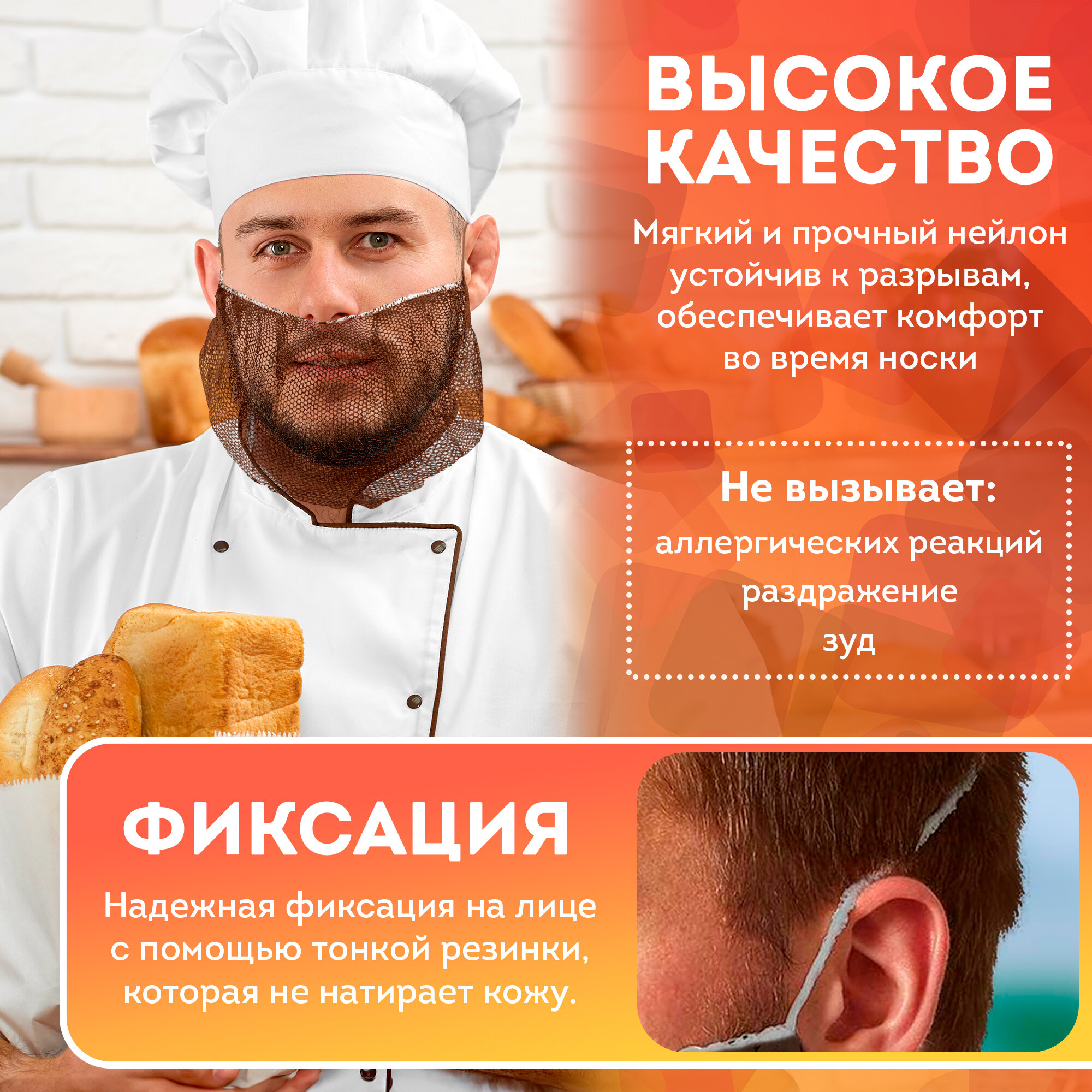 Набородник одноразовый нейлон коричневый ABC Pack & Supply, 100шт. Защитная сетка для бороды, для повара, маска шапочка на бороду медицинская интересное: