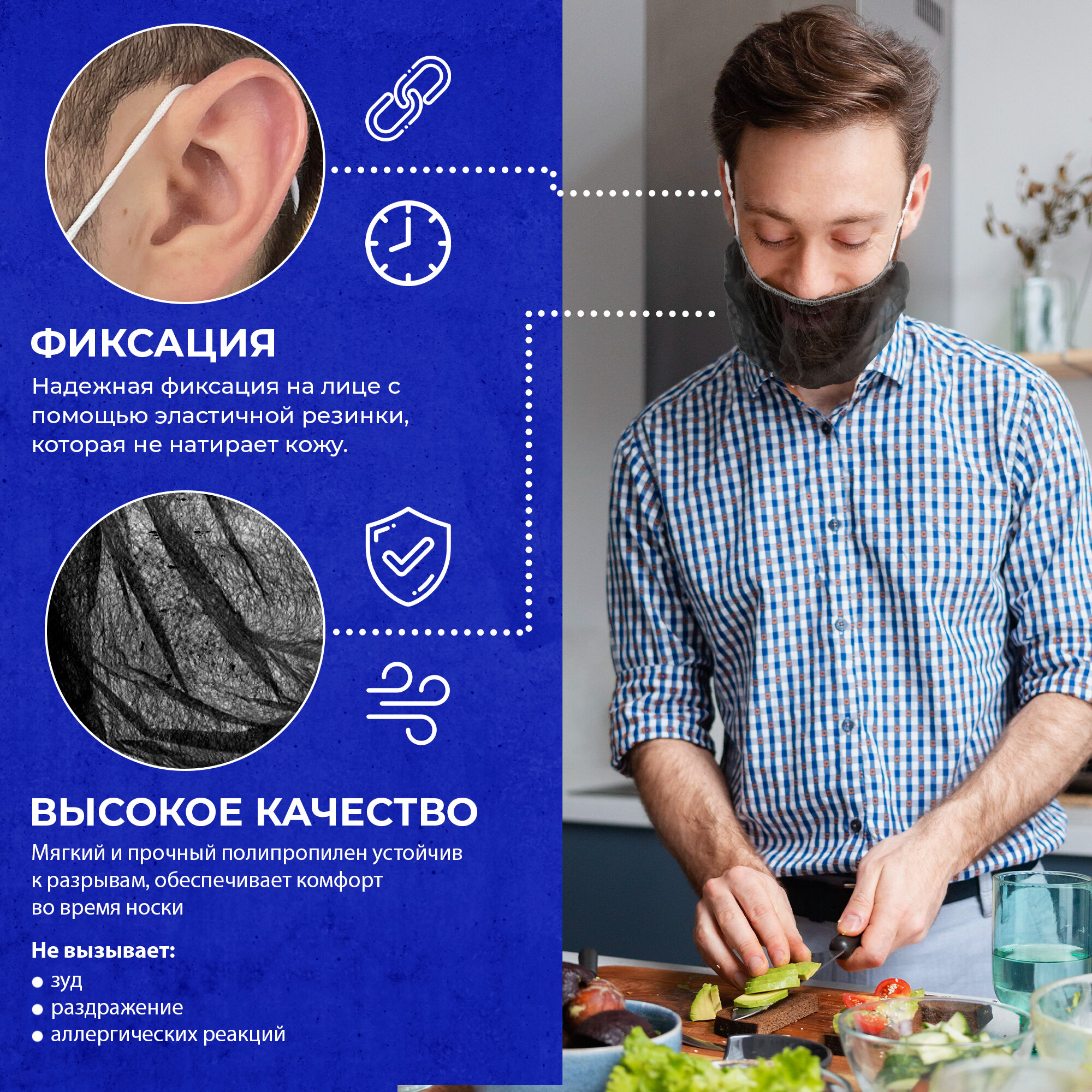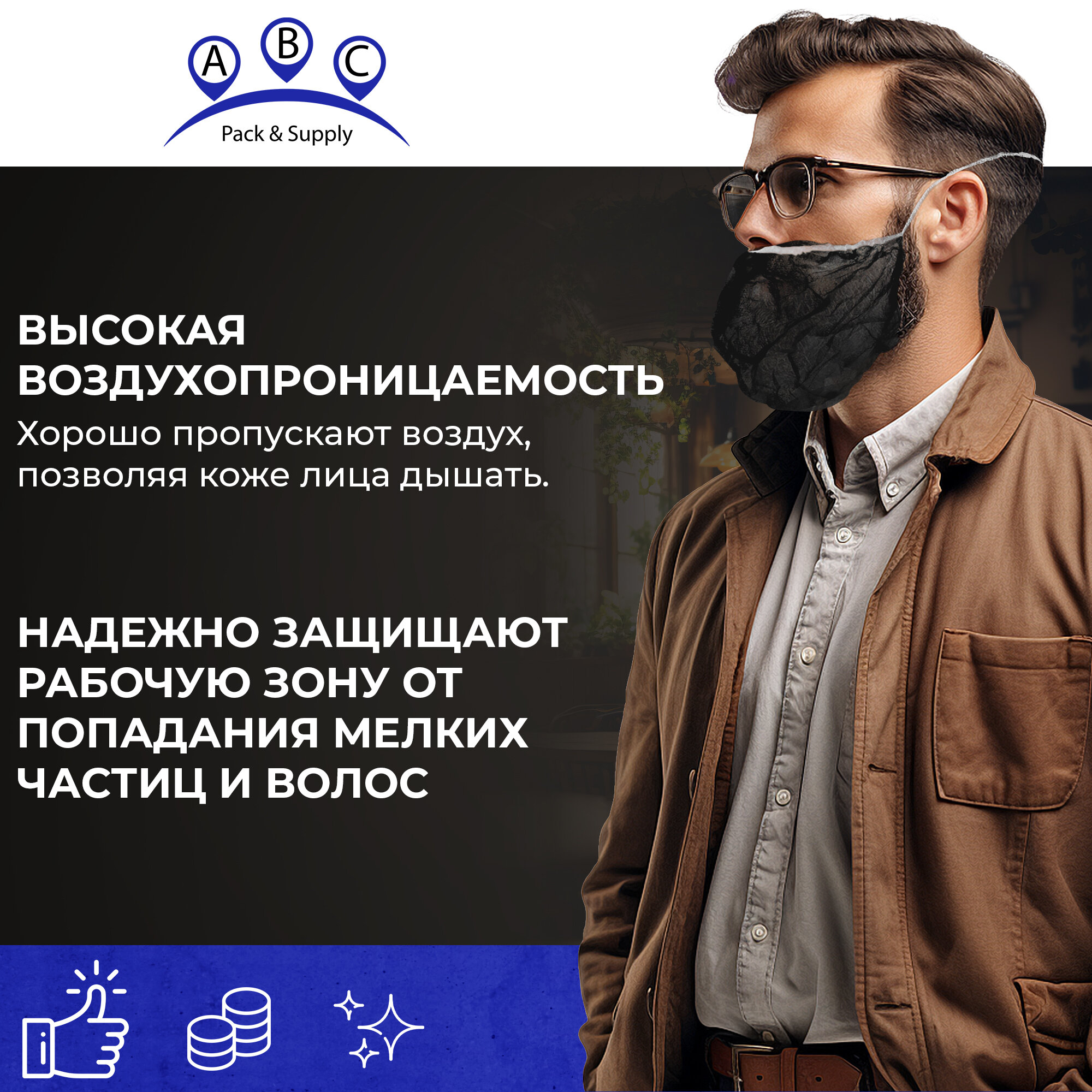 СохранитьНабородник одноразовый полипропилен черный ABC Pack & Supply, 100шт. Защитная маска для бороды, сетка на бороду медицинская, для повара, в общепит интересное: