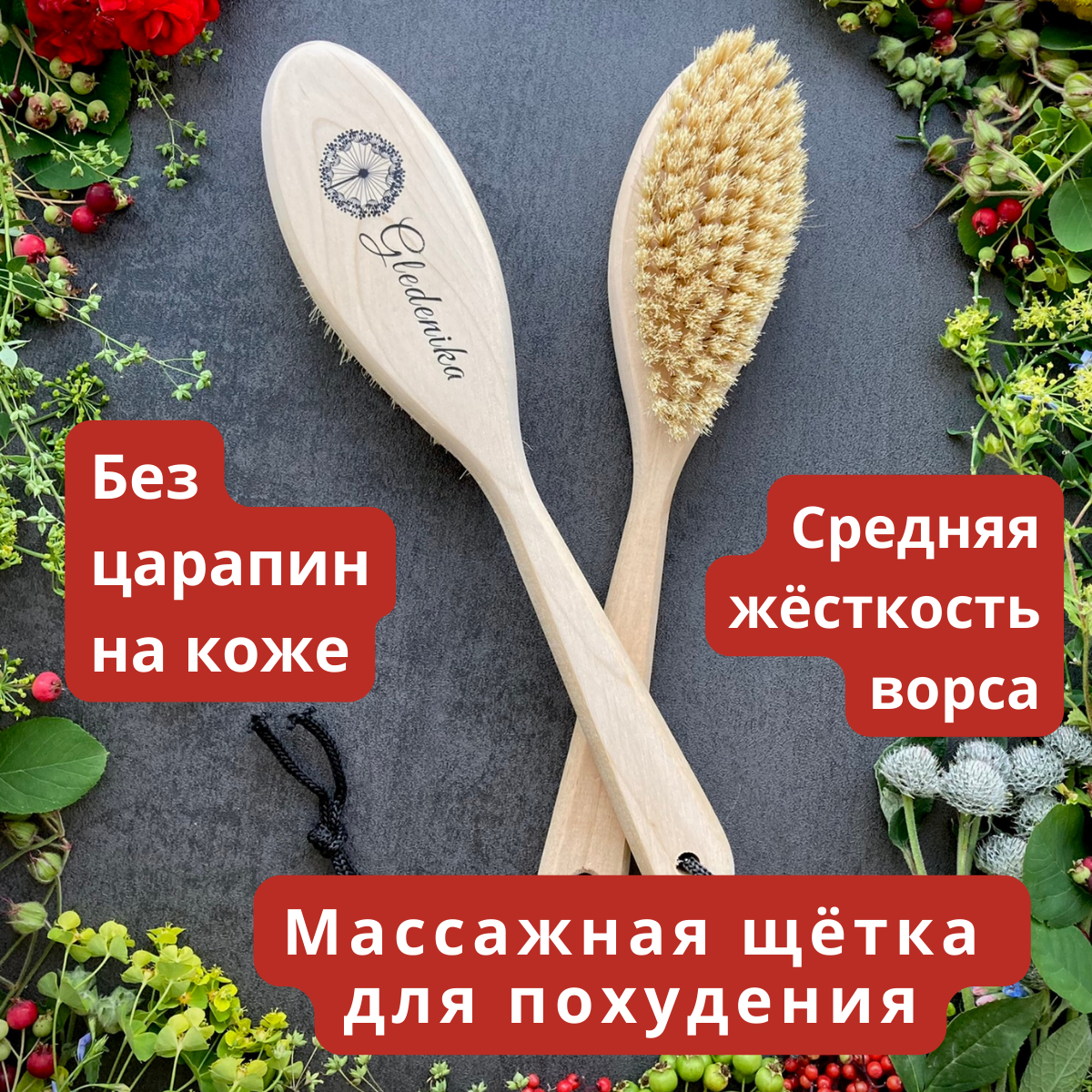 Gledenika /Антицеллюлитная щетка на ручке для сухого массажа тела с натуральной щетиной кабана/Средняя жесткость интересное: