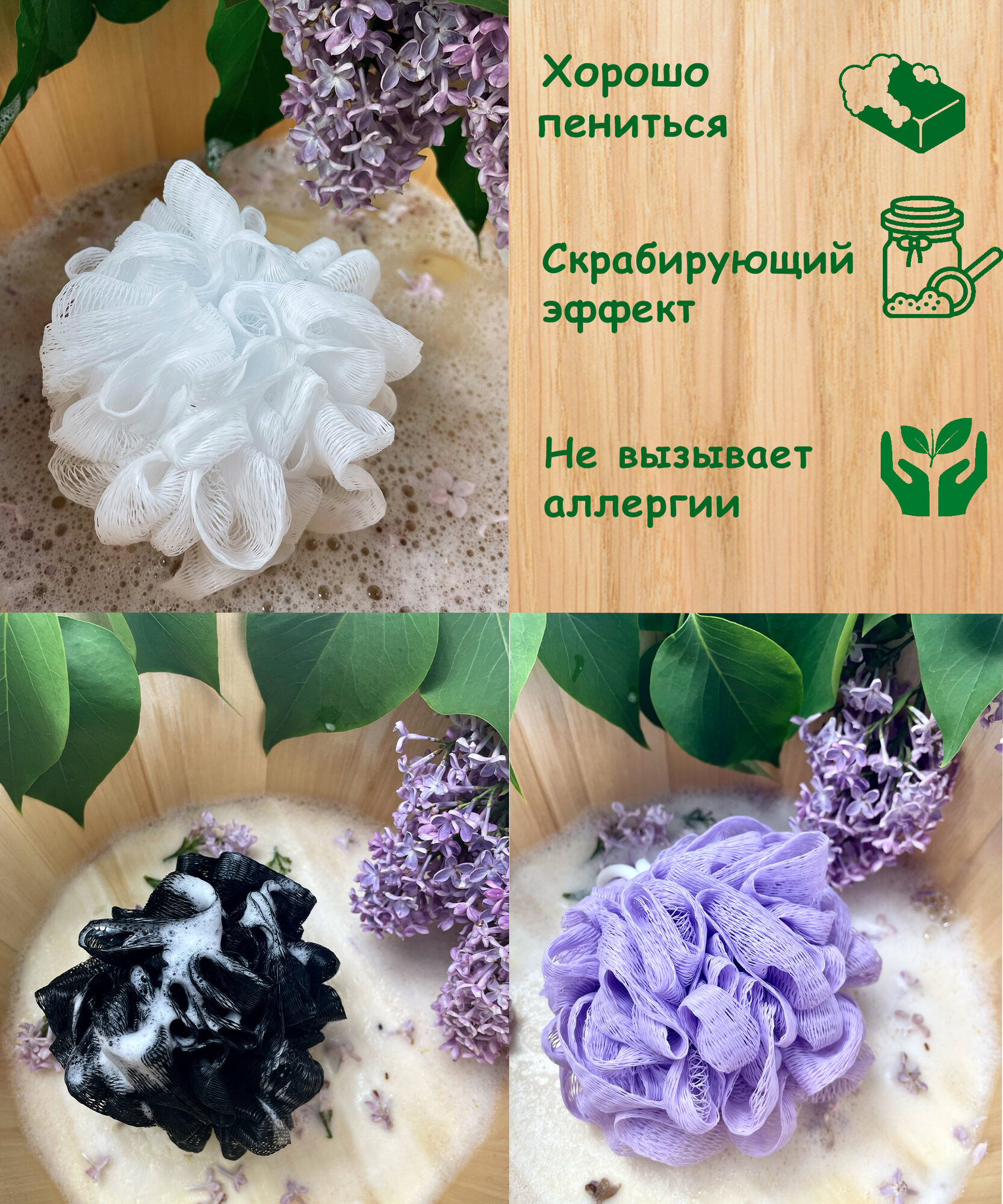 Мочалка-шар XL массажная для тела Kuber, стиль Мечта, цвет сиреневый и белый (15x15x13 см) интересное: