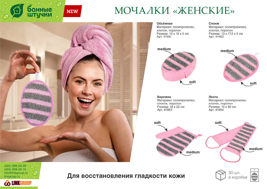 Мочалка "Женская" варежка /для ванны/бани/сауны/мытья/душа/тела двусторонняя, medium/soft "Банные штучки" интересное: