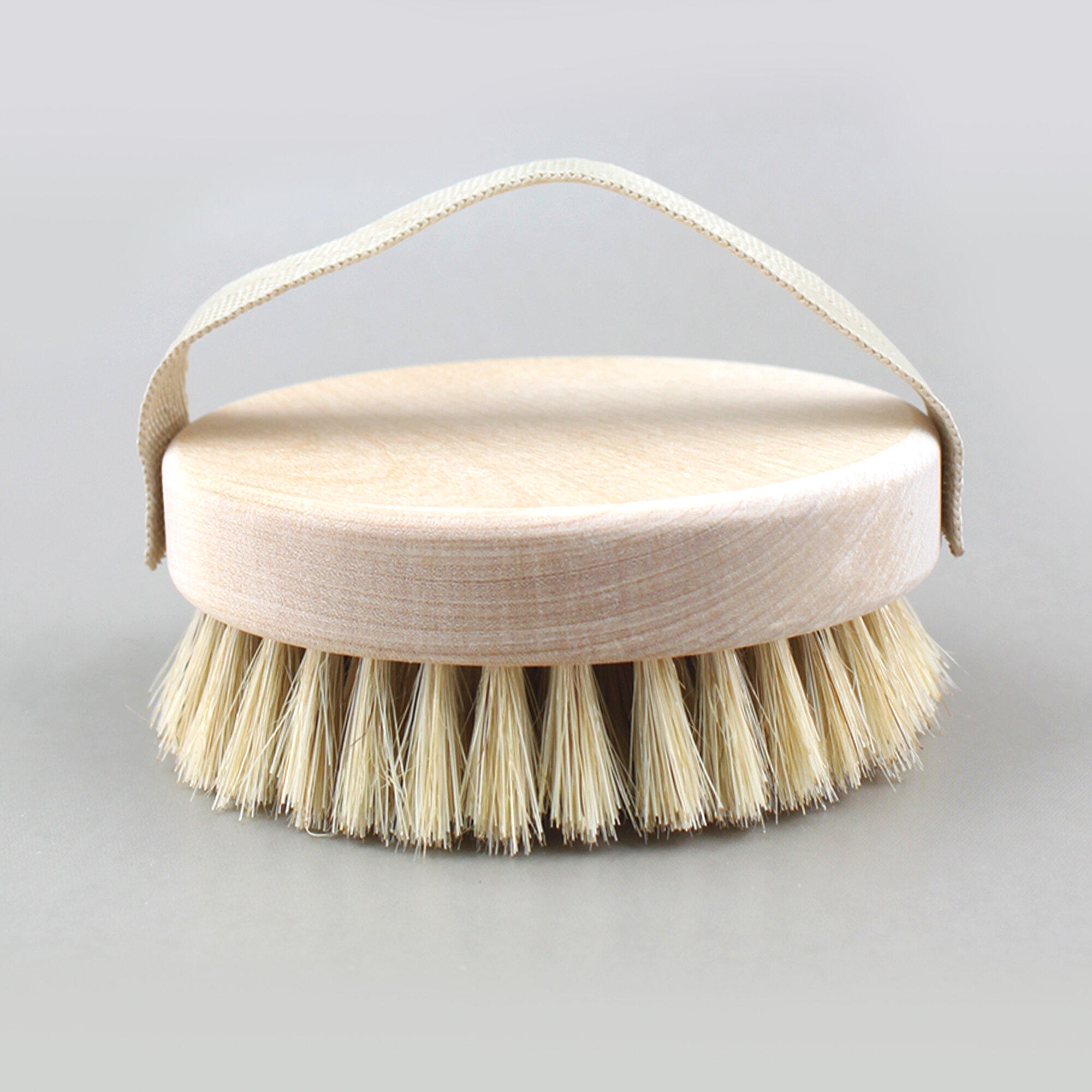 Купить Щетка для сухого массажа тела, круглая, с ремешком, щетина кабана, средней жесткости