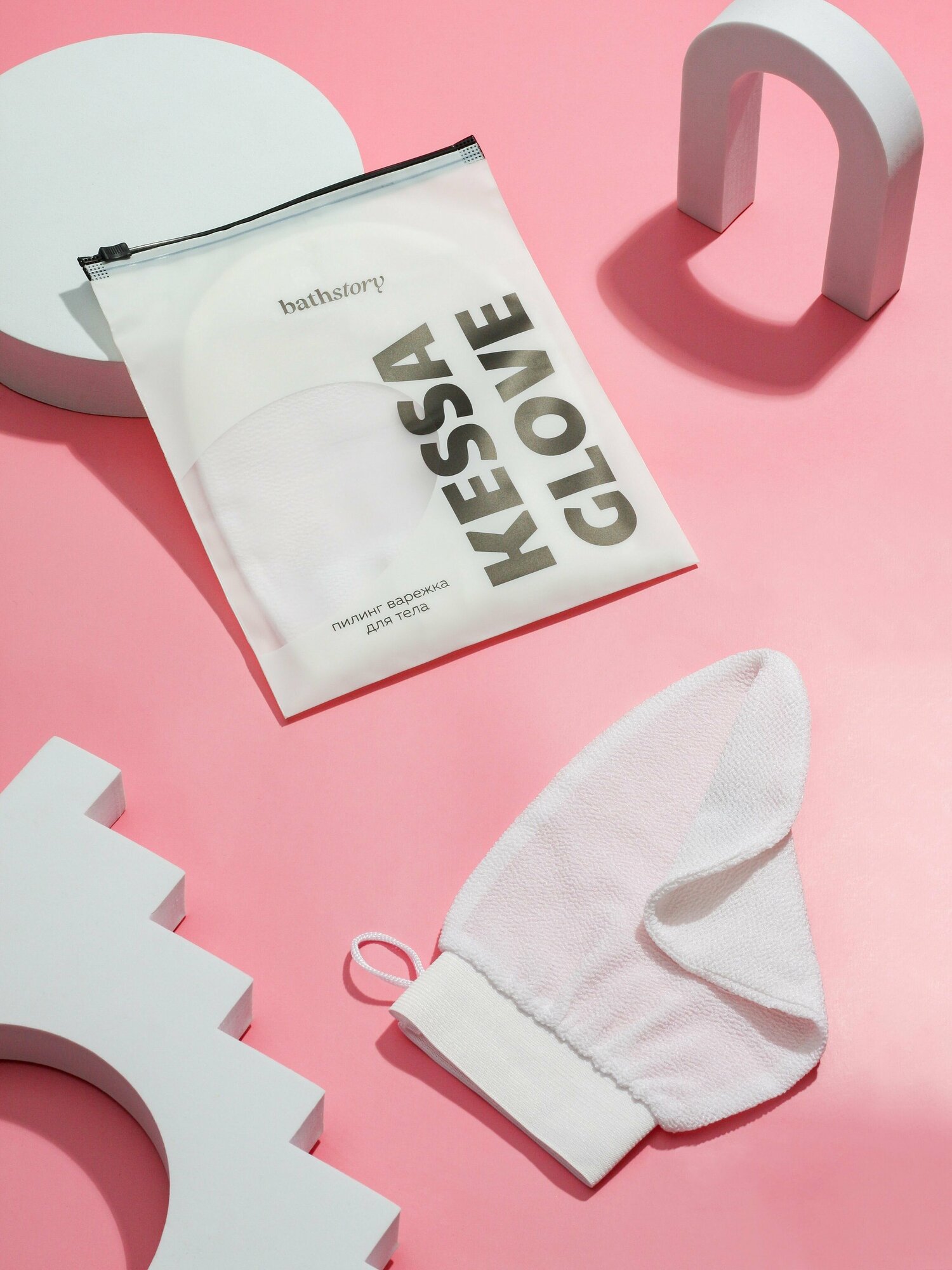 Купить BATH STORY Рукавичка Кесса/Кесе для пилинга тела и очищение кожи, жесткая массажная мочалка для бани и ухода за телом, белая