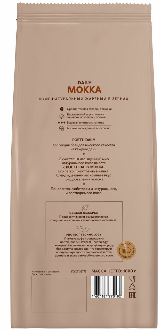 Купить Кофе в зернах Poetti (ex-PAULIG) Daily Mokka, натуральный, жареный, 1 кг