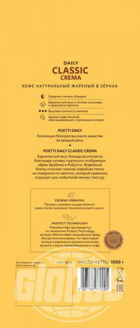 Кофе натуральный жареный в зернах Poetti Daily Classic Crema 1 кг интересное: