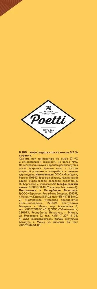 | Дополнительная информация | Способы приготовления: в гейзерной кофеварки, в фильтр-кофеварки, во френч-прессе, в автоматической кофемашине. |