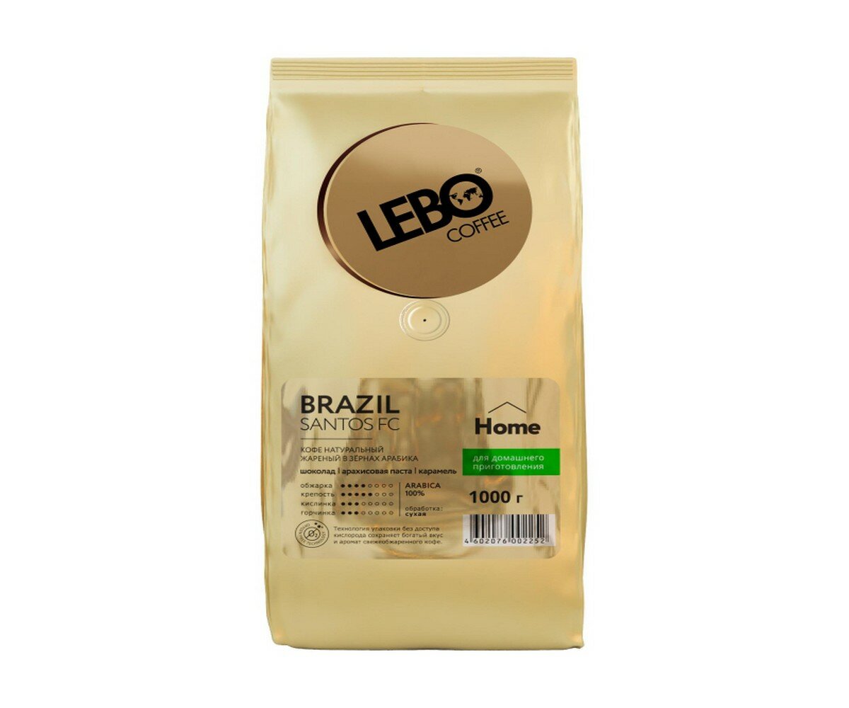 Купить Кофе в зернах Lebo BRAZIL SANTOS FS Home, Премиум Арабика 100%, 1000 г